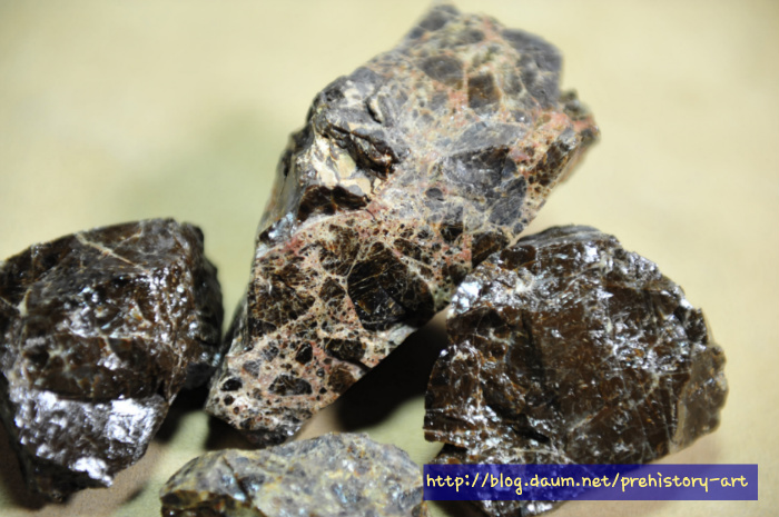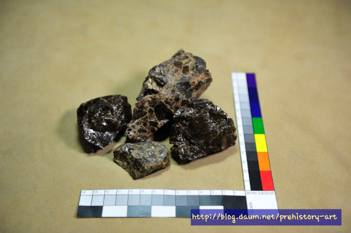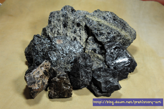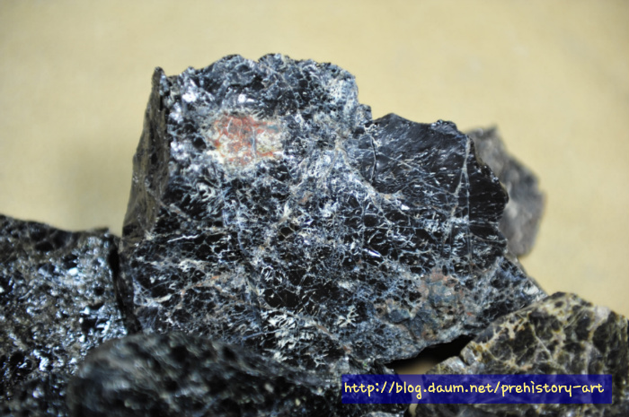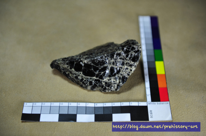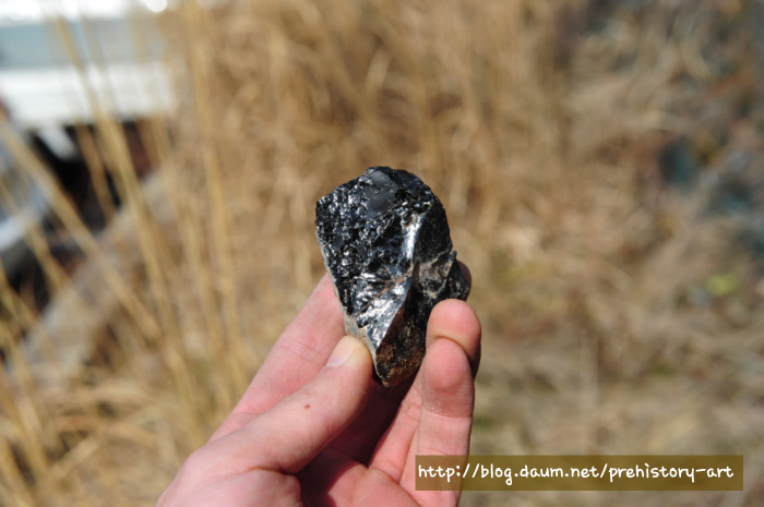 - 다만 흑요석으로 정식 명칭을 붙이기에는 부족한 분석결과로 크게 유리질화산암 계열로 명명되고 있지만 언제인가는 국내에서도 양질의 흑요석산지와 그 흑요석을 중심으로 한 석기문화가 분명히 확인될 가능 매우 클 것으로 생각된다.