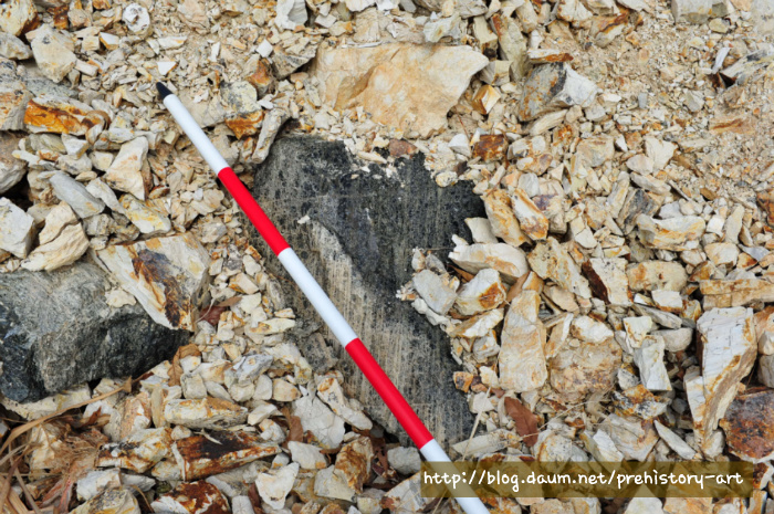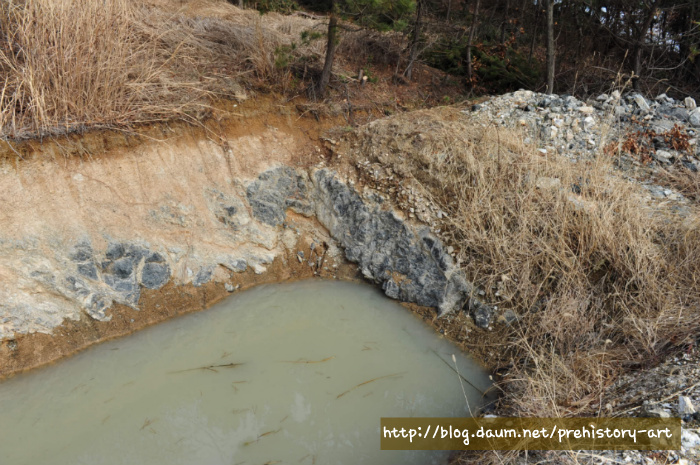 - 유리질화산암 산지는 이미 오래 전부터 논문으로 발표된 바 있지만 수 차례의 답사를 통해서 살펴본 바 석기제작의 원석으로 사용하기에는 많은 무리가 있다(관련 연구자들은 산지 위치에 대해 어느정도 알고 있으나 일부 아마추어 수집가 등에 의한 무분별한 채집, 반출 등을 고려하여 미공개 함)