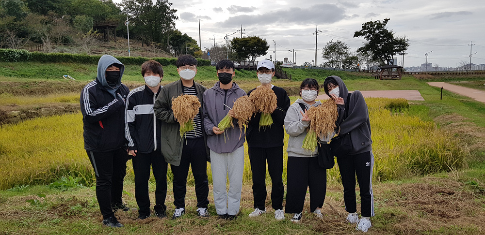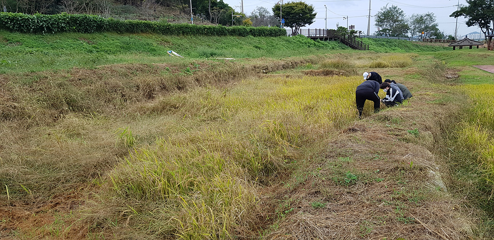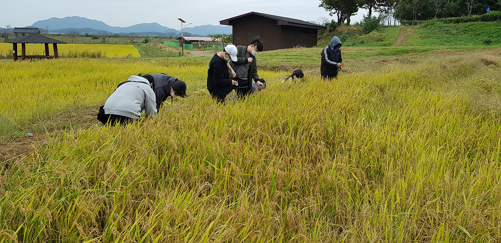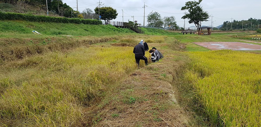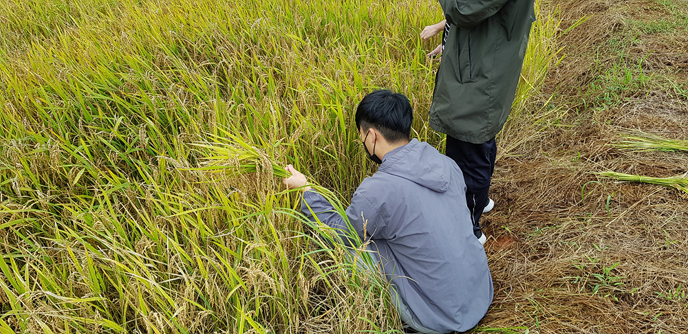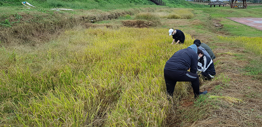 - 전남농업박물관 친환경벼재배단지 내에 있는 다랑이 논에서 21년도 벼수확실험을 실시