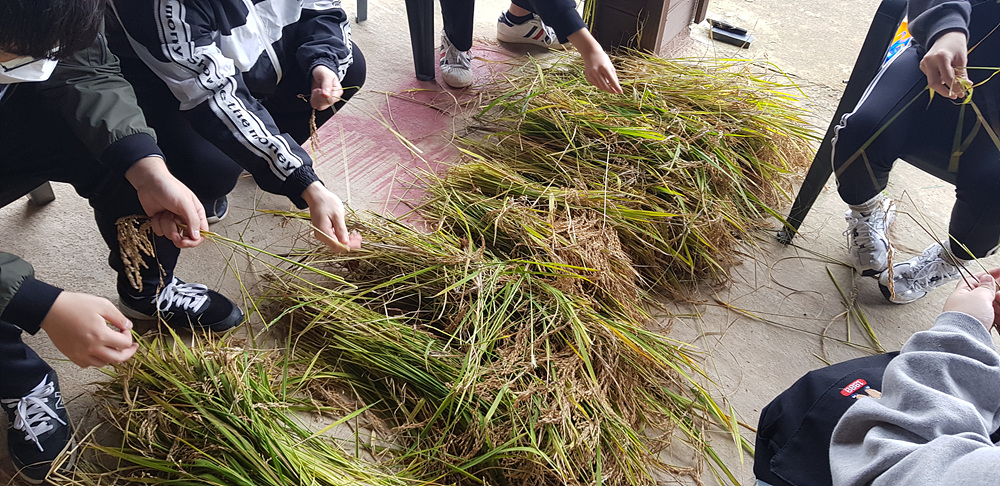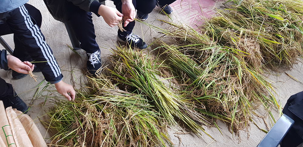 - 학생들마다 반달돌칼의 파지법이나 사용방법이 모두 다르고 벼를 꺽어내는 요령도 달랐지만 반복적인 과정에서 본인들만의 편한 방법을 찾아 실험할 수 있도록 지도