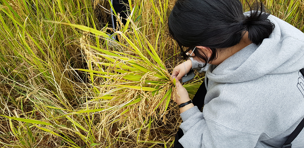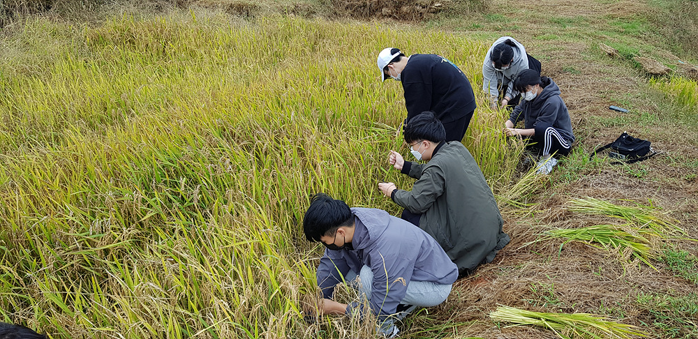 - 전남농업박물관 친환경벼재배단지 내에 있는 다랑이 논에서 21년도 벼수확실험을 실시