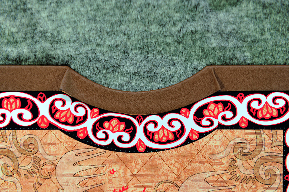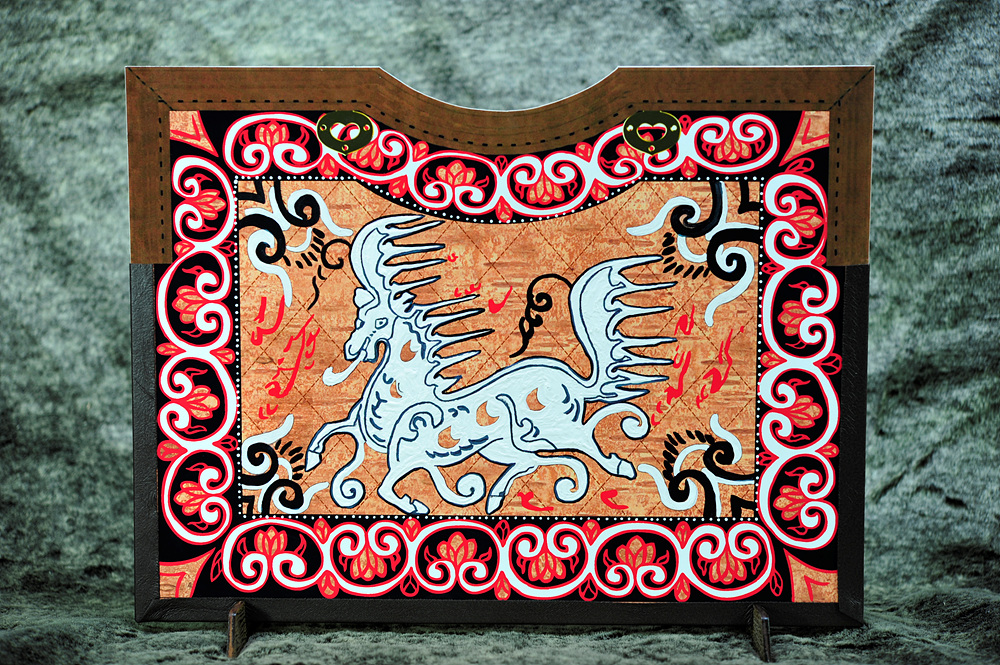 - 실제 천마도 유물은 자작나무껍질을 가공하여 화판으로 사용하였으나 가공 및 제품단가가 높고 완성도가 떨어지기 때문에 플라스캠프에서 자체 제작한 두꺼운 합지를 가공, 인쇄하여 채색이 가능하도록 제작한 화판을 사용합니다.