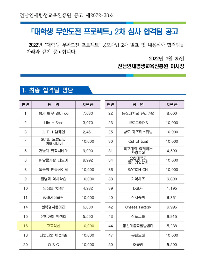 2022년도 목포대학교 고고문화인류학과 "대학생 무한도전 프로제트" 선정