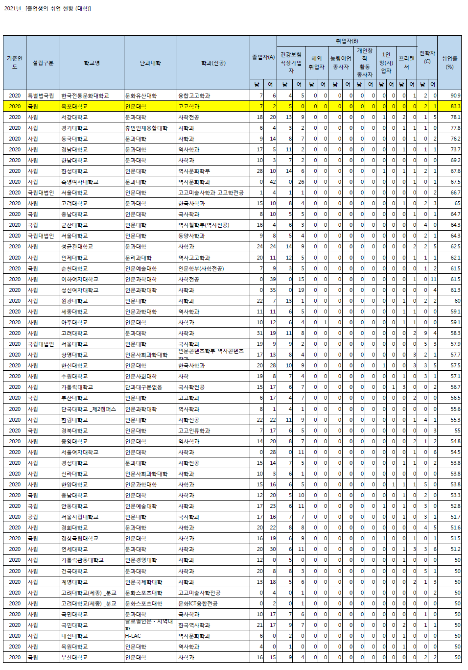 <본 통계는 2021년도 "대학알리미" 학과별 졸업생 취업현황 자료에 공시되어 있습니다.>