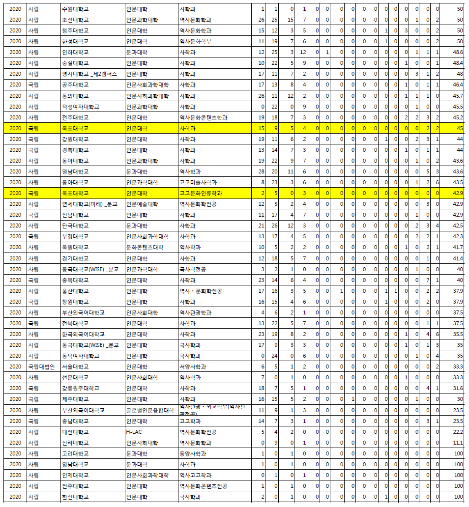 지난 2020년도 목포대학교 고고문화인류학과 (고고학과, 사학과) 졸업생들이 전공을 살려 전국 각각의 조사, 연구기관에 취업하여 높은 취업률을 달성하였습니다.