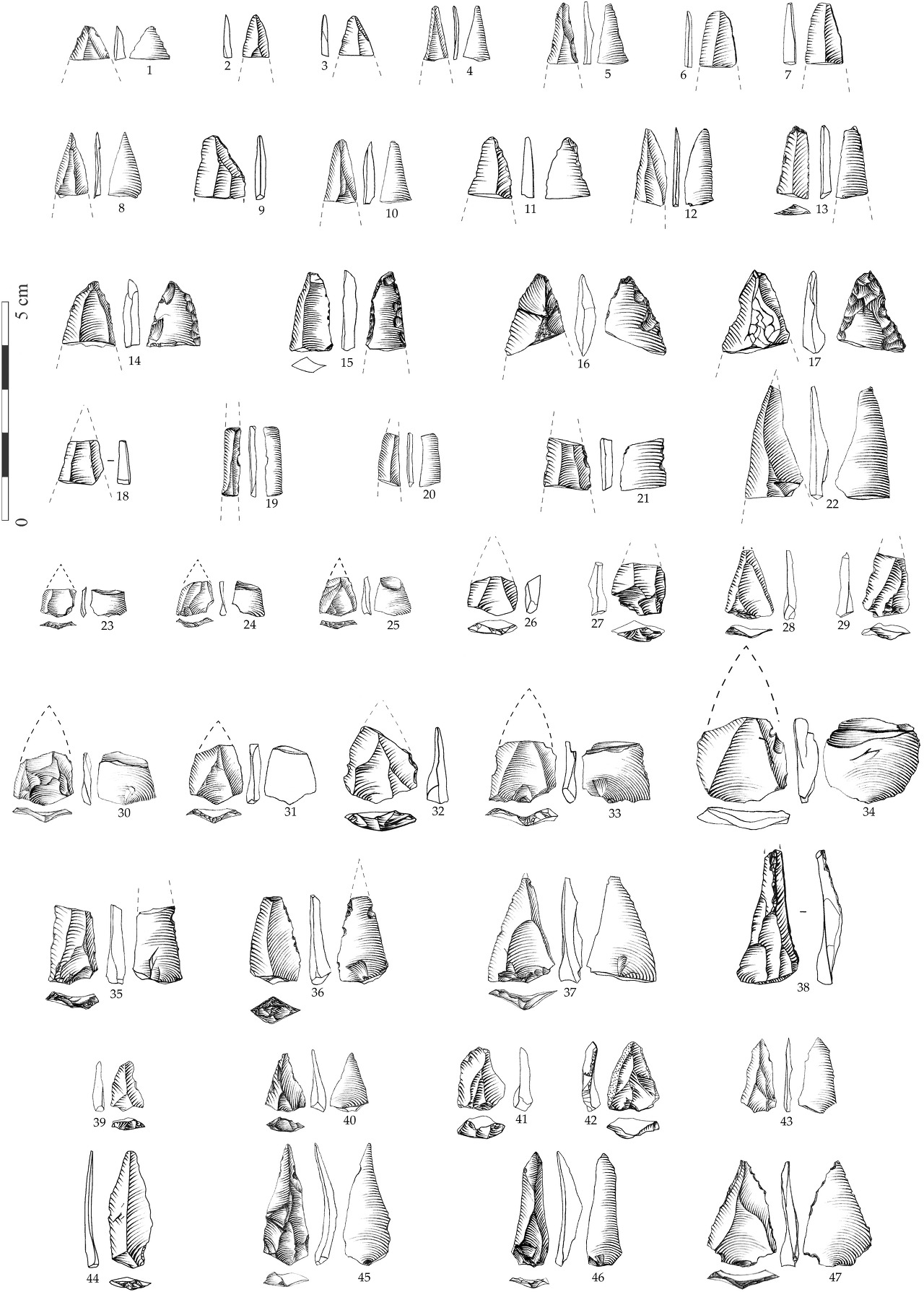 돌의 너비는 1㎝ 정도로 작았고 무게도 몇 그램 나가지 않았다. 가장 작은 것은 현대 인류가 만든 화살촉과 형태가 흡사했으며 일부 돌에서는 빠른 속도로 날아가 어딘가에 부딪혔을 때 생긴 것으로 추정되는 손상 흔적도 확인됐다.