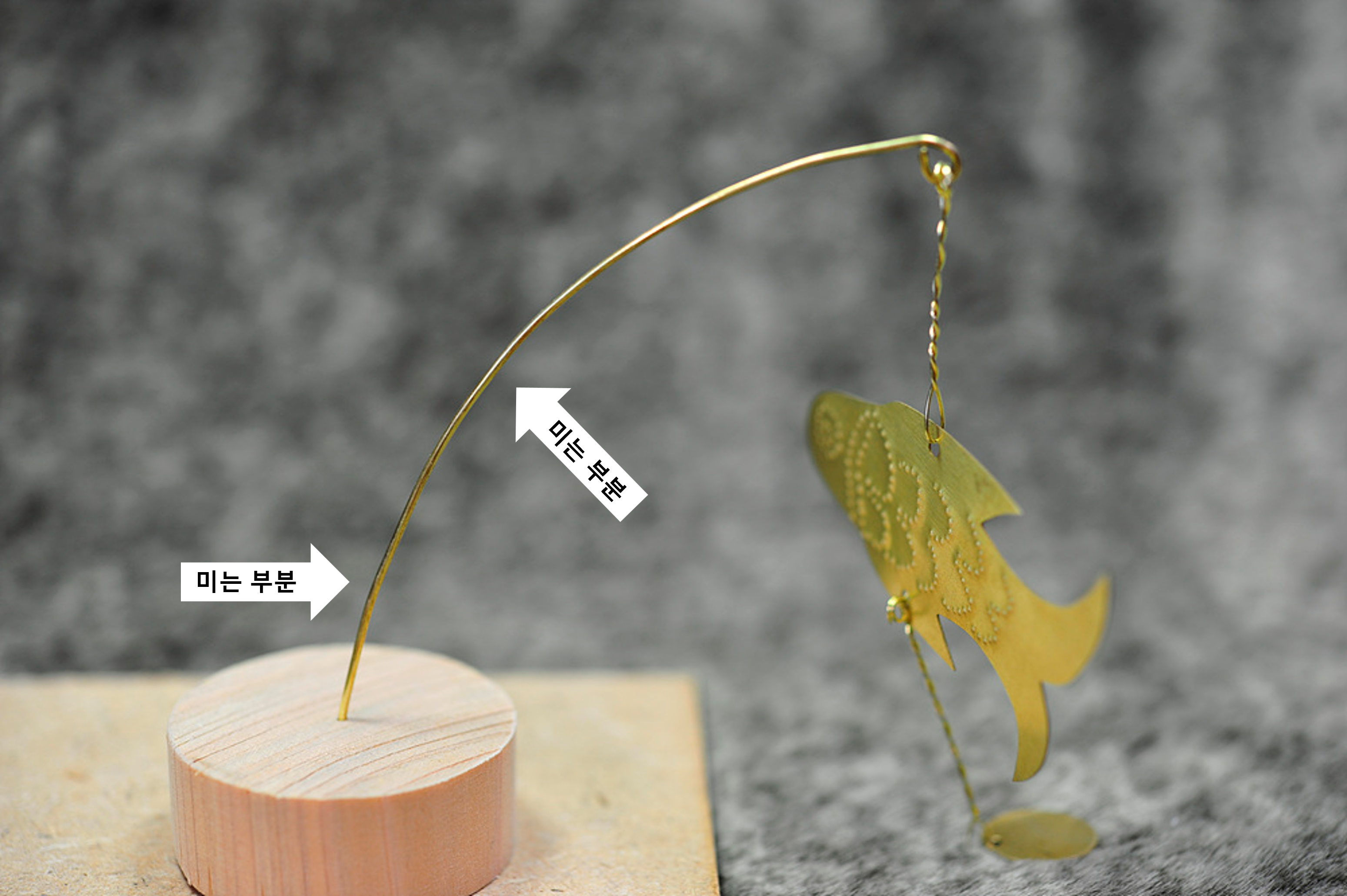 물고기 장식품이 정면을 바라보면서 완전히 수직으로 세워 질 수 있도록 철사나 원형 금속판들을 조금씩 조정해줍니다.