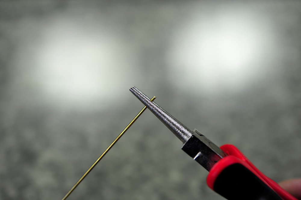 오른쪽 사진처럼 굵은 철사를 구부릴 때 끝부분의 원형으로 말아 놓은 부분 방향으로 구부려줍니다.