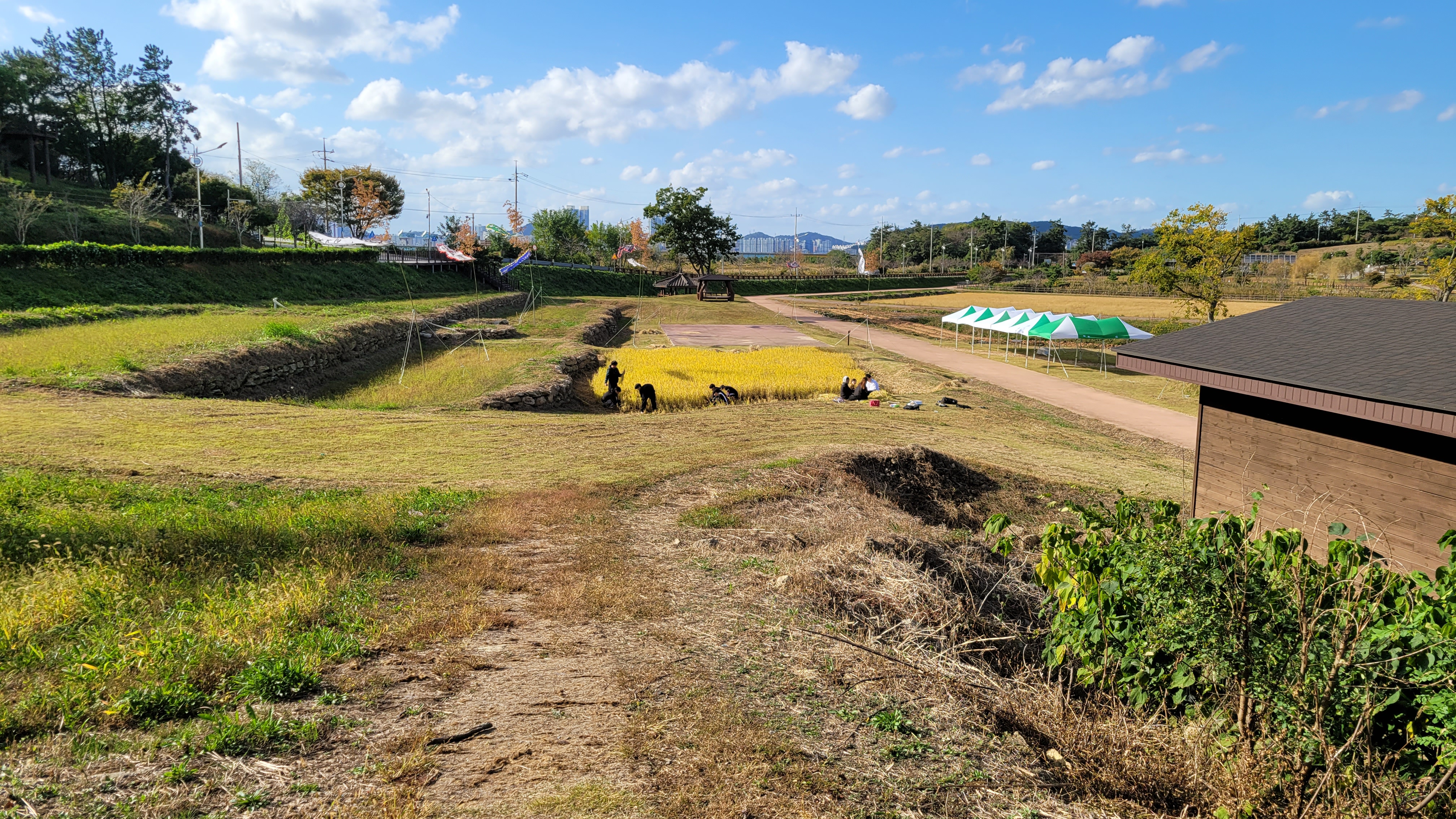 - 전남농업박물관 친환경벼재배단지 내에 있는 다랑이 논에서 벼수확실험을 실시