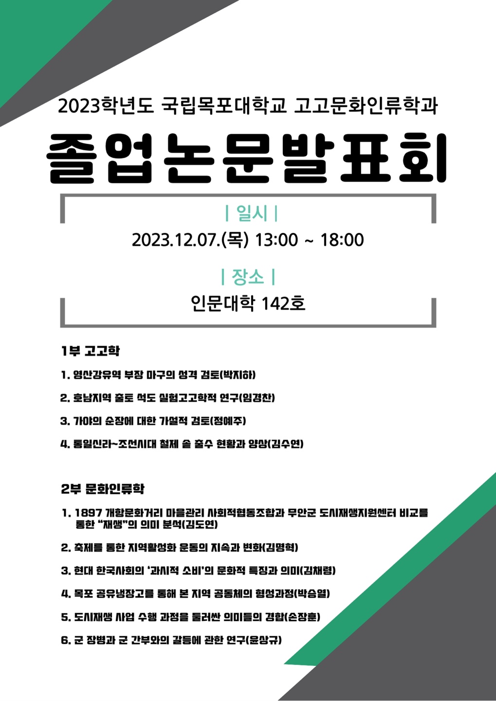 | 2023 목포대학교 고고문화인류학과 취업 연구 성과 (0) | 2023.12.22 |