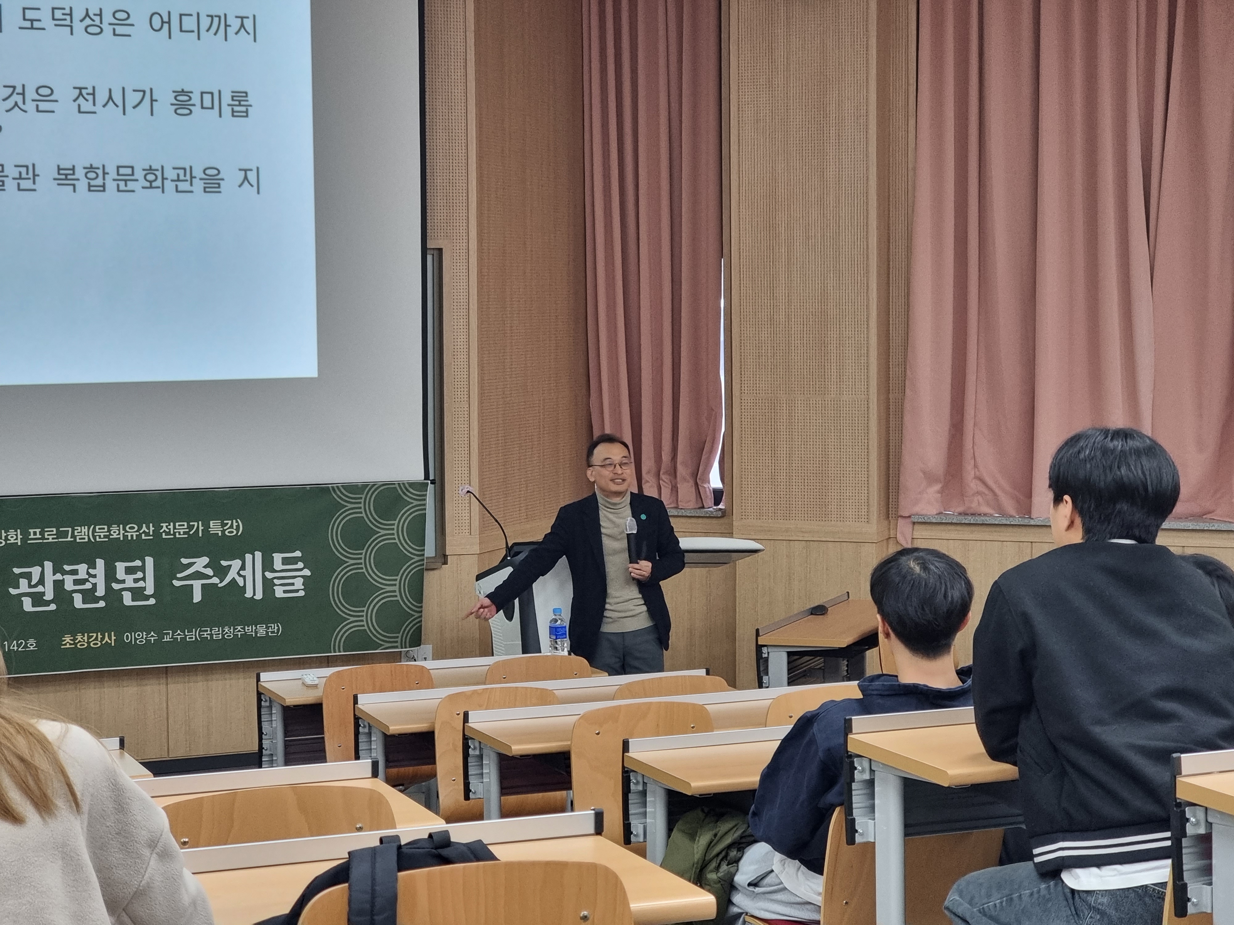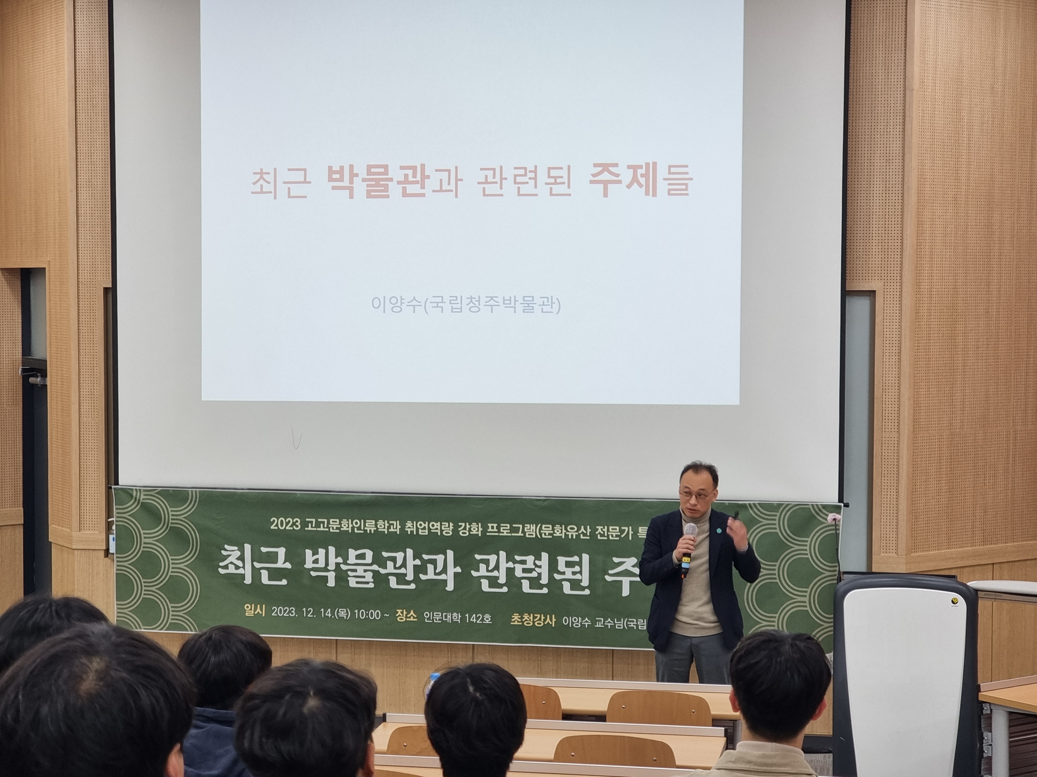 국립청주박물관장으로 재직중이신 이양수 관장님을 초빙하여 "최근 박물관과 관련된 주제들"이라는 주제로 특강이 진행되었습니다.