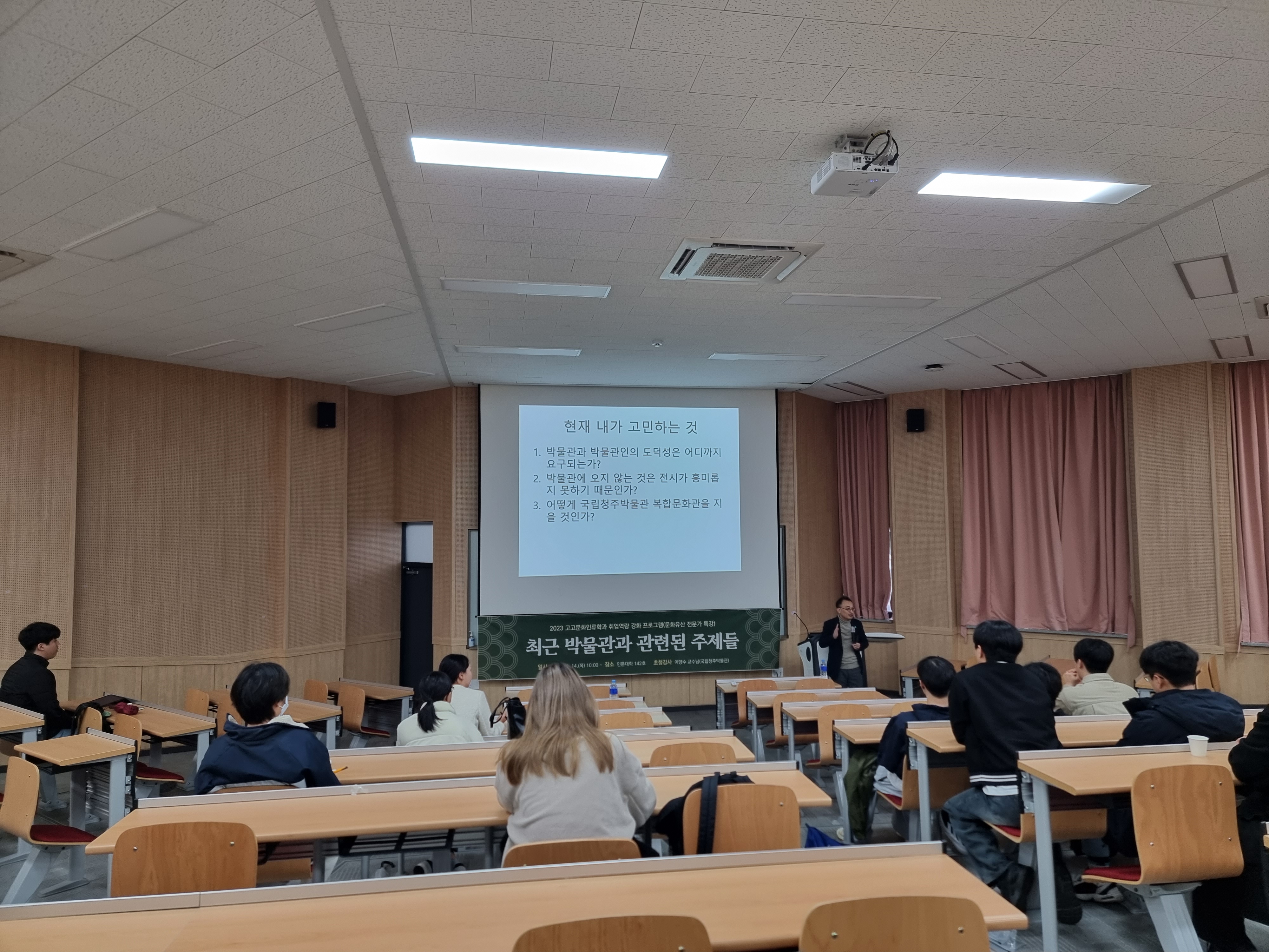 국립청주박물관장으로 재직중이신 이양수 관장님을 초빙하여 "최근 박물관과 관련된 주제들"이라는 주제로 특강이 진행되었습니다.