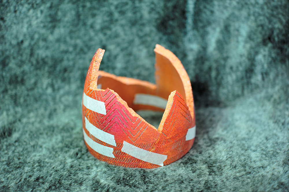 동봉된 종이테이프를 이용하여 토기조각들을 부착해 줍니다(임시복원).
