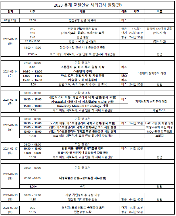 2024년 2월 13~20일 6박 8일 일정으로 영국 문화유산 답사를 진행할 예정입니다.