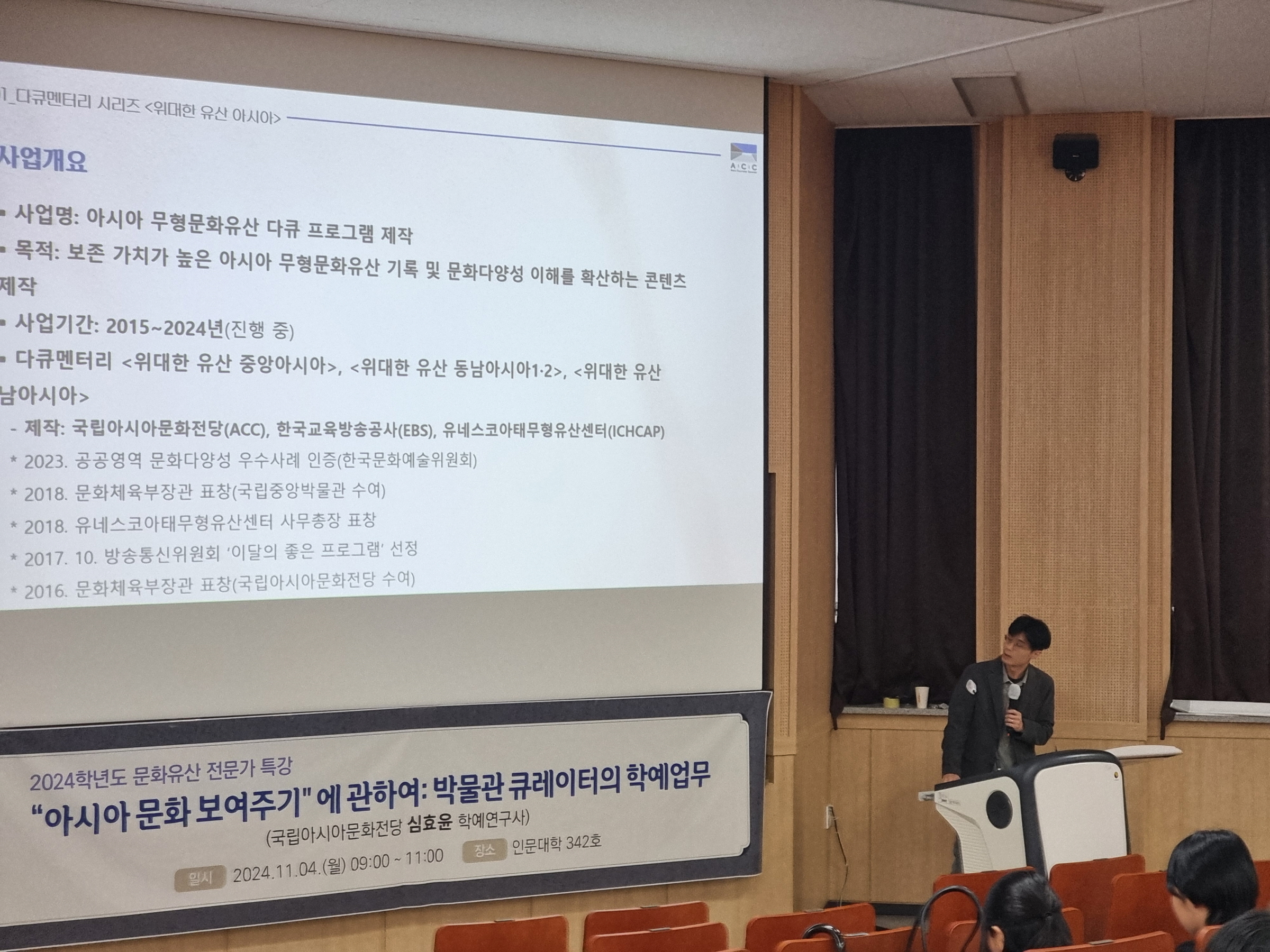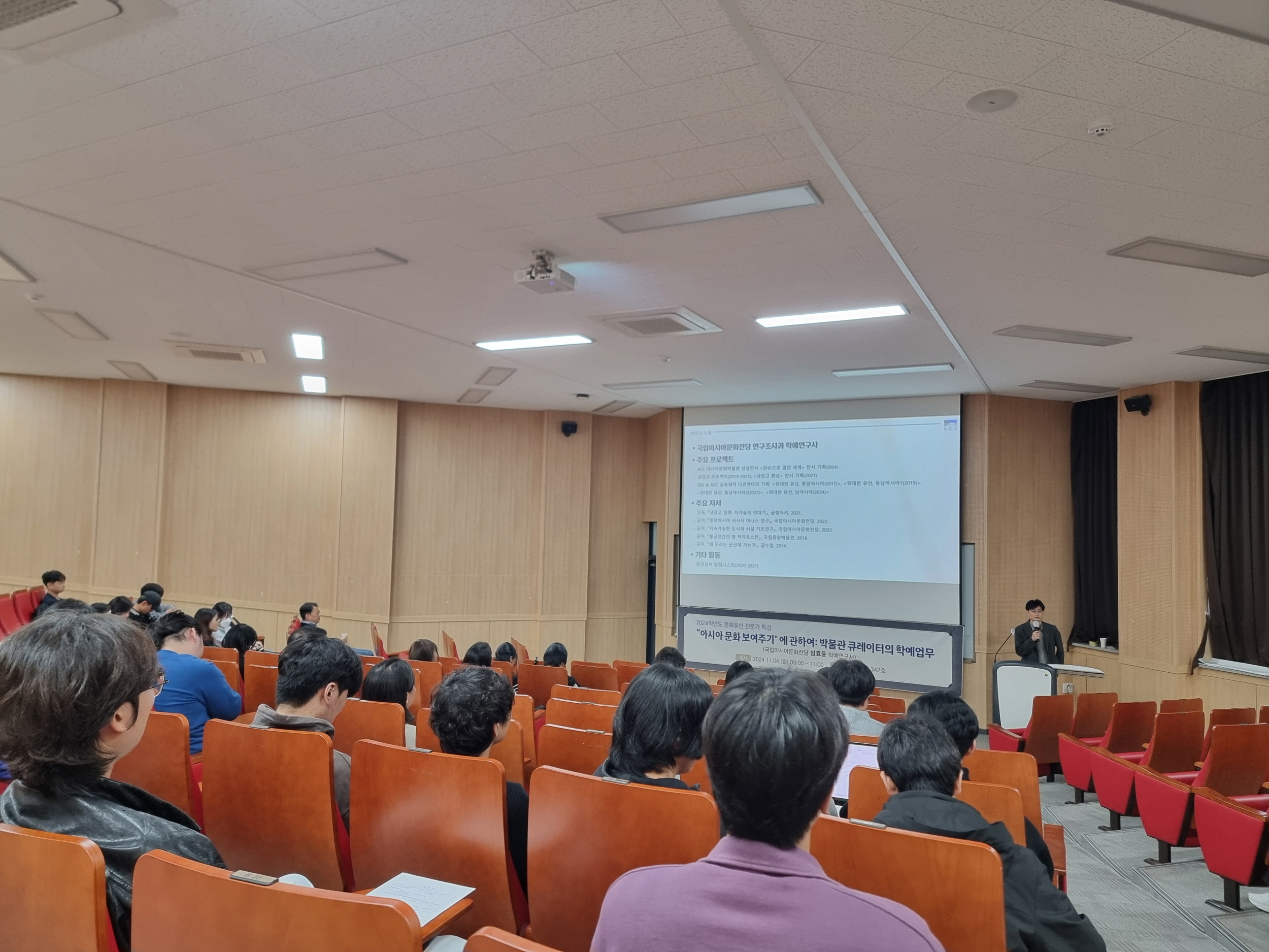 국립아시아전당 심효윤 학예사 선생님을 모시고 <"아시아 문화 보여주기"에 관하여:박물관 큐레이터의 학예업무>란 주제로 특강이 진행되었습니다.