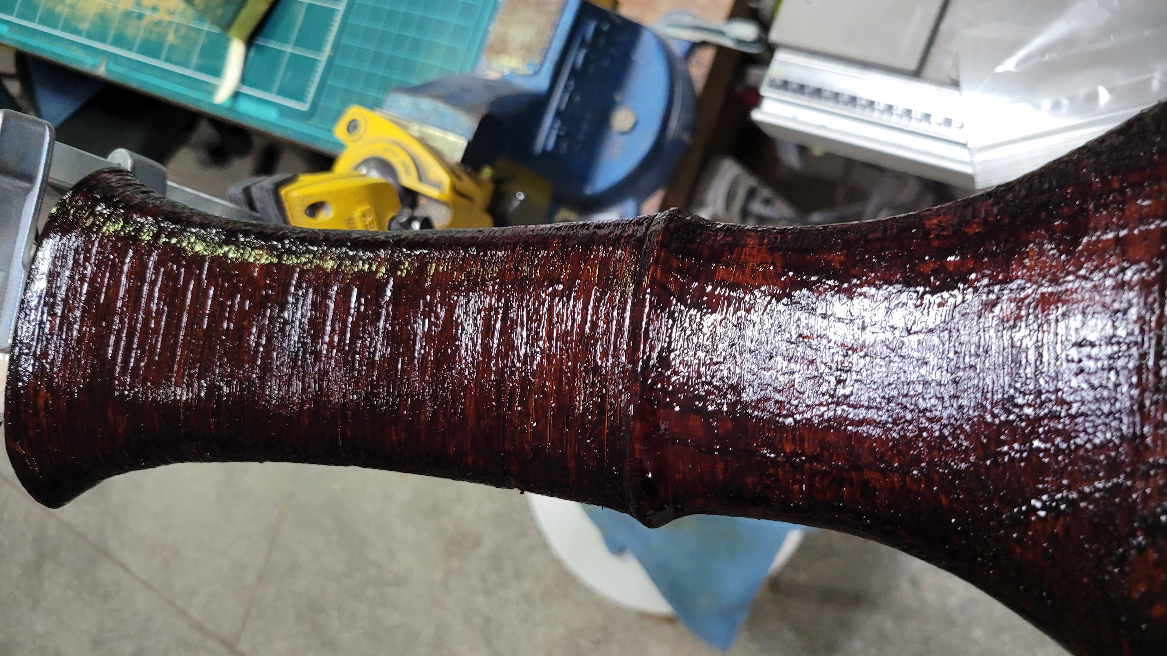 - 자작나무 수피와 주석, 옻칠로 장식 마감한 신창동유적 출토 칠초 제작복원