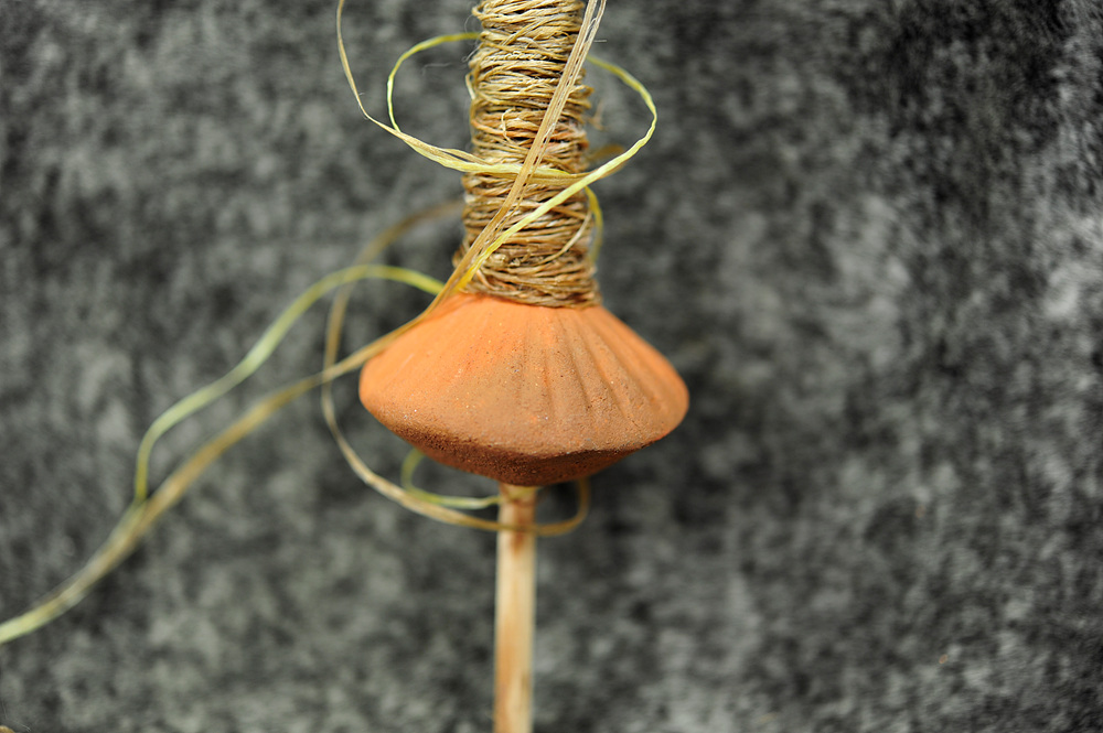 천연끈을 가락바퀴를 이용하여 실제로 꼬아서 제작한 후 전시연출