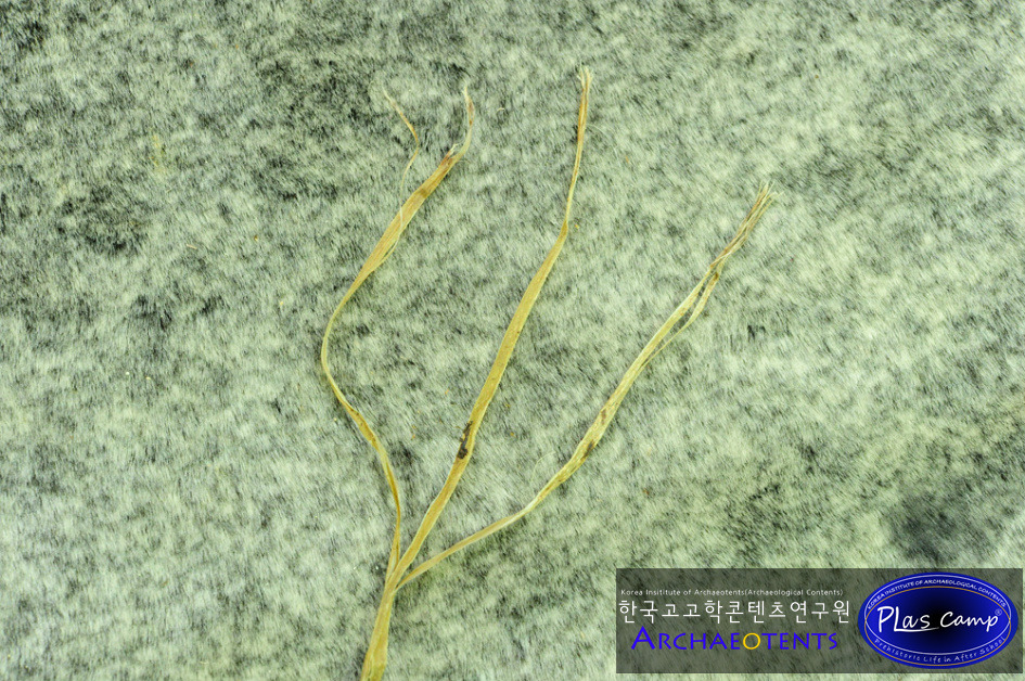 물기를 짜낸 삼줄기를 조심스럽게 펴놓습니다. 삼줄기의 끝부분입니다.