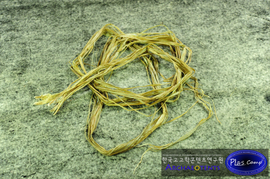 앞선 과정들을 반복적으로 하면 사진에서 보이는 것처럼 약 30m 길이의 천연 삼줄기끈이 완성됩니다.