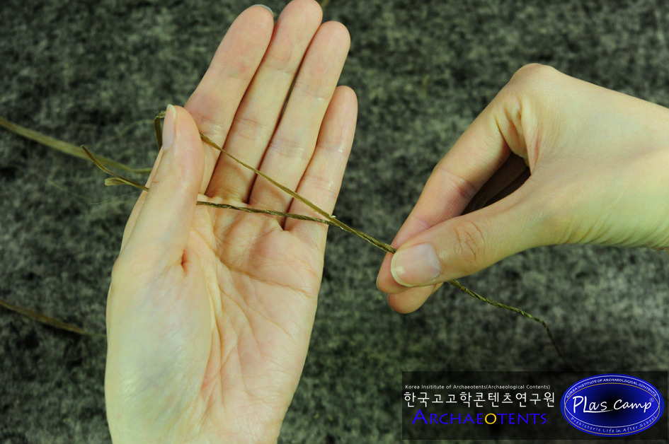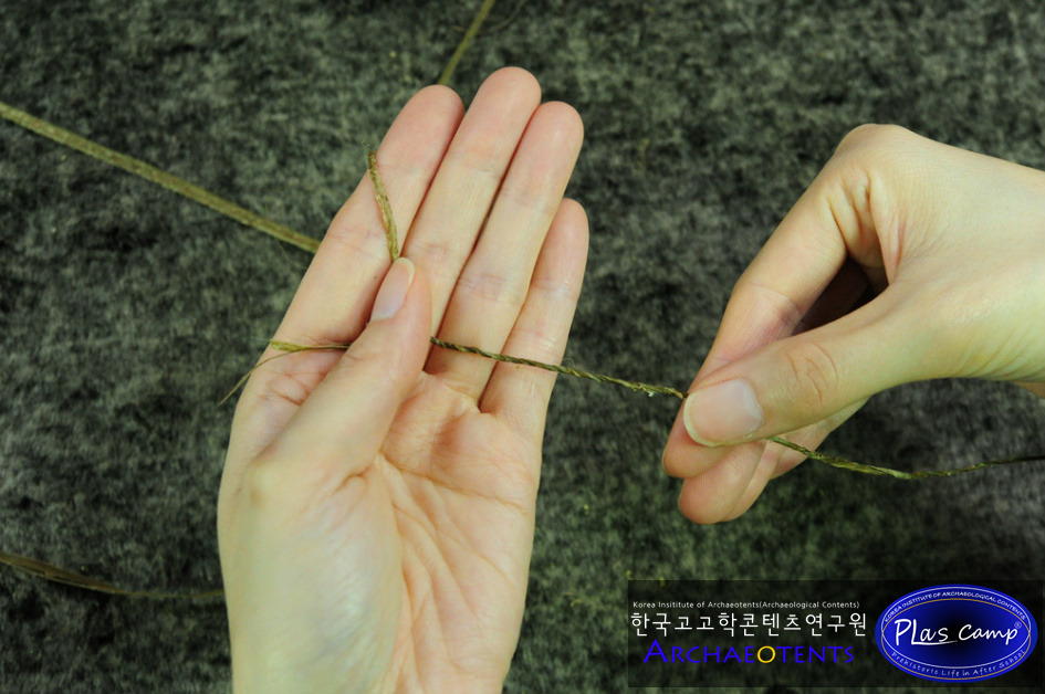 체험시간에 여유가 있다면 한가닥 씩 꼬아진 두줄의 삼끈을 두꺼운 끈으로 합사하여 더욱 견고하게 제작할 수 있습니다.