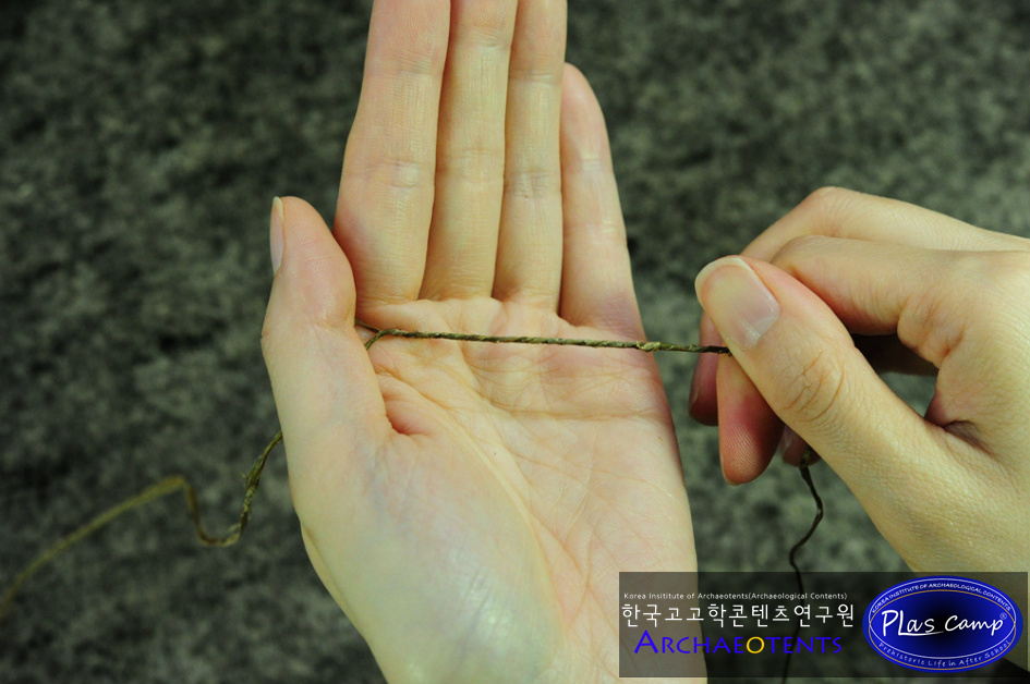 체험시간에 여유가 있다면 한가닥 씩 꼬아진 두줄의 삼끈을 두꺼운 끈으로 합사하여 더욱 견고하게 제작할 수 있습니다.