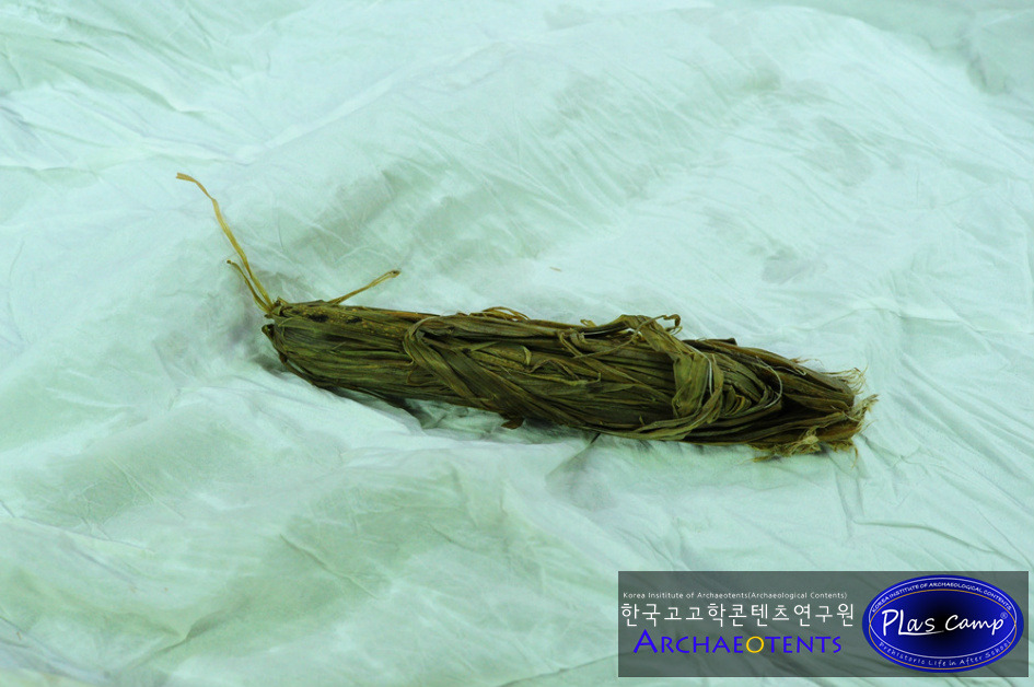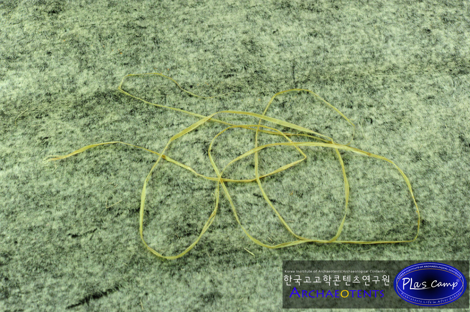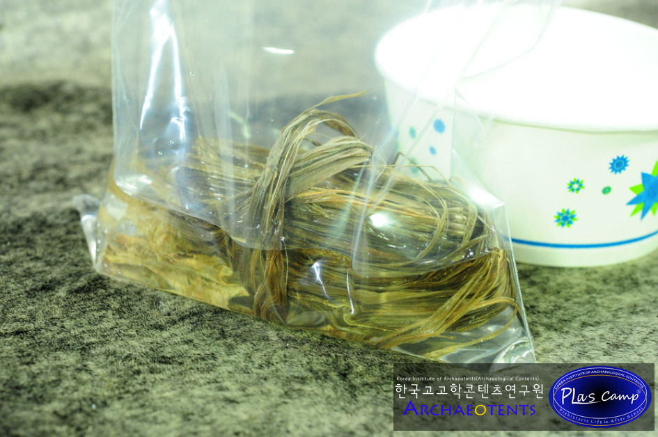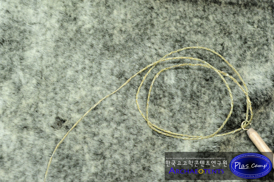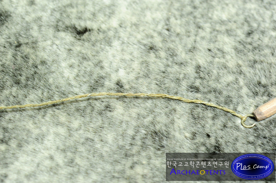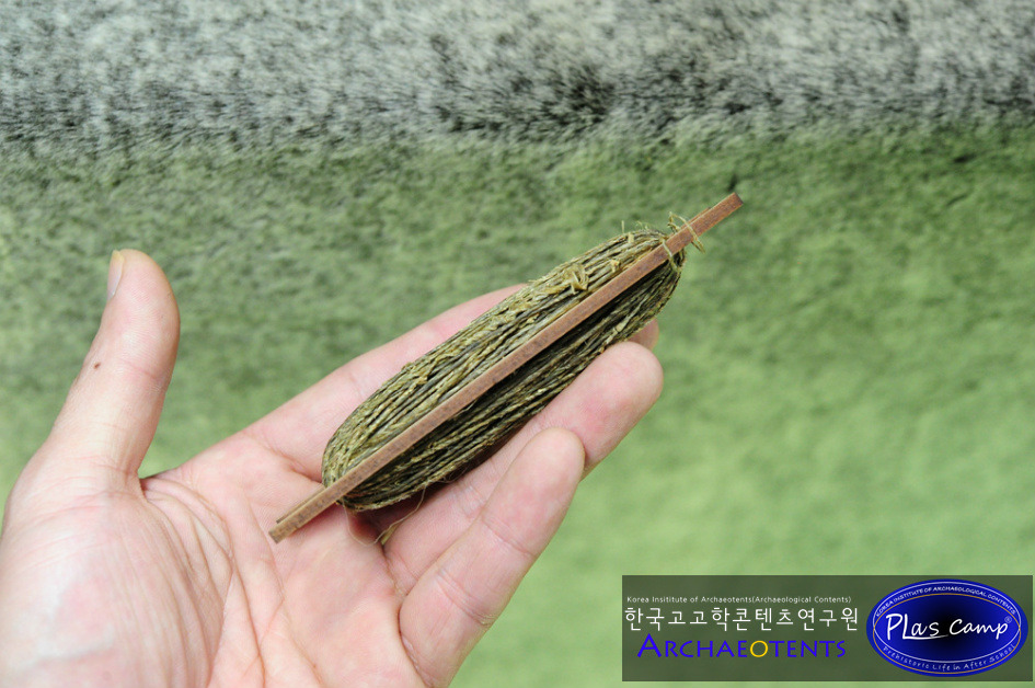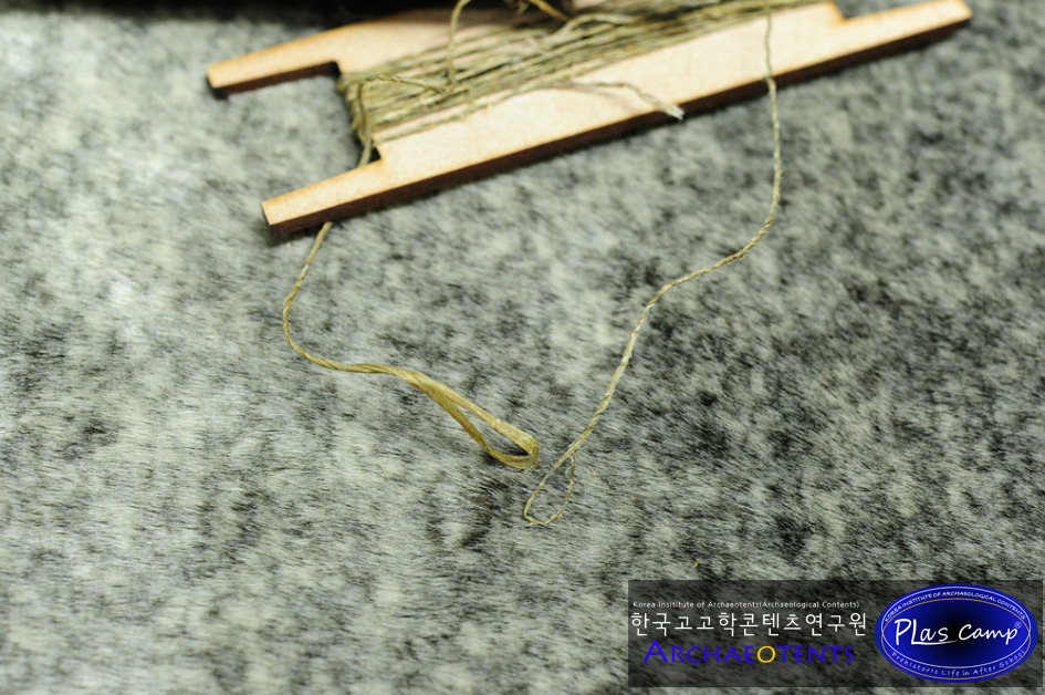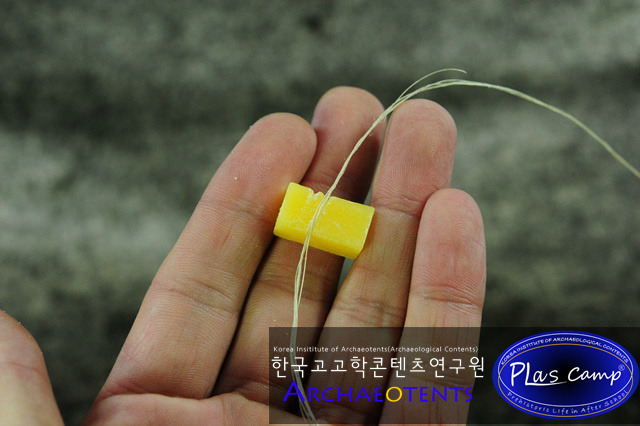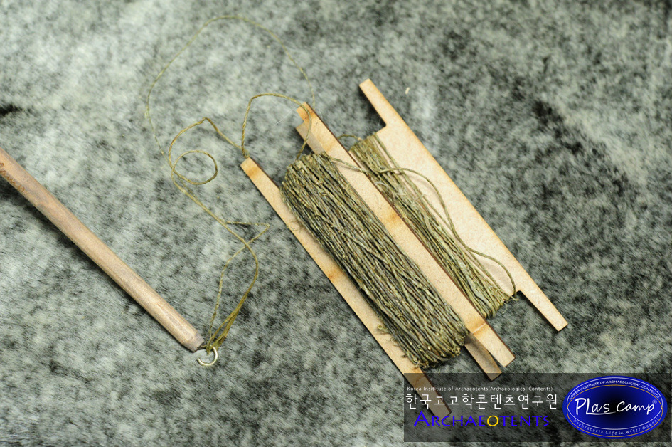 가락바퀴에 감긴 끈을 실감개로 옮길 때 밀납칠을 하여 실의 강도를 높일 수 있습니다. 한꺼번에 가락바퀴에서 많은 실을 풀어 밀납작업을 하면 실이 다시 꼬이게 되니 주의바랍니다.