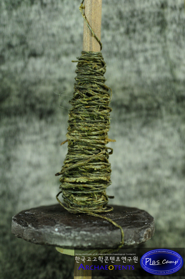 완성된 삼줄기는 가락바퀴 몸체에서 풀어 밀납칠을 한 후 실감개에 옮겨서 보관할 수 있습니다.