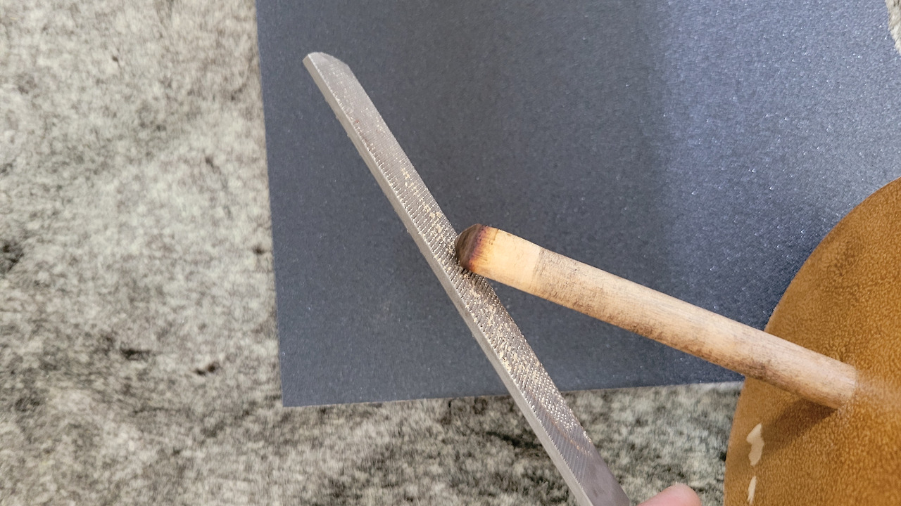 뭉특해진 발화목 끝부분은 항상 긴 타원형 모양으로 다듬어서 사용할수 록 불을 피울 수 있는 확률이 높아집니다.