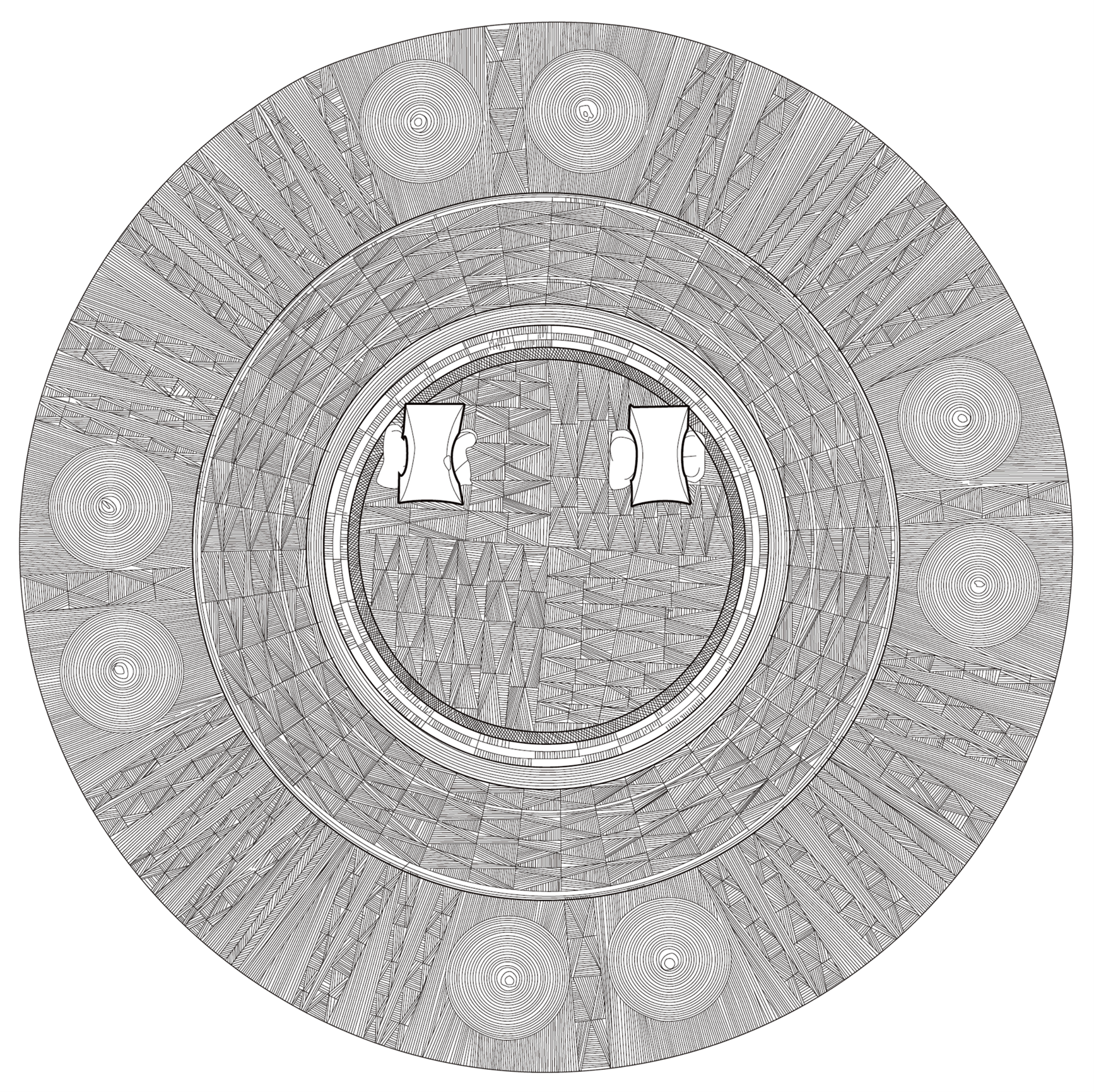 - 청동거울의 문양은 원형, 사각형, 삼각형 등 다양한 도형의 조합으로 이루어져 있으며 수많이 그어져 있는 선들은 약 0.2~0.3mm 간격으로 규칙적으로 배열되어 있습니다. 이 거울에 새겨진 선들은 약 1만3천 개 이상이며 거울의 4방향에 규칙적으로 새겨져 있는 동심원문(원형문)들은 약 100여 개 정도 됩니다.