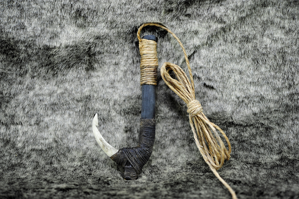 구성품은 사슴뿔로 제작된 낚시바늘과 석재로 가공된 낚시축입니다.