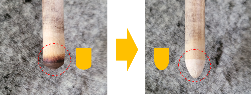 뭉특해진 발화목 끝부분은 항상 긴 타원형 모양으로 다듬어서