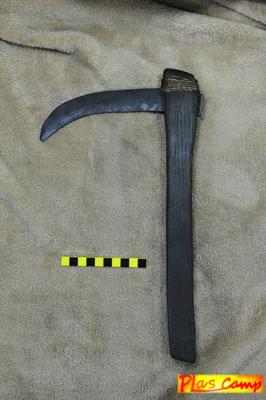 초기철기시대 낫의 형태를 알 수 있는 나무손잡이의 복원.