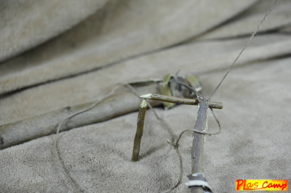 하늘채를 받치고 있는 Y자형 나무가지는 실내에서 하늘채를 고정시키지 못하기 때문에 별도로 제작한 것이며 긴 나무가지와 올무만 있으며 나무가지를 땅에 깊이 박아 설치 할 수 있다.
