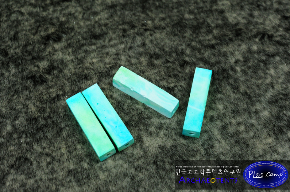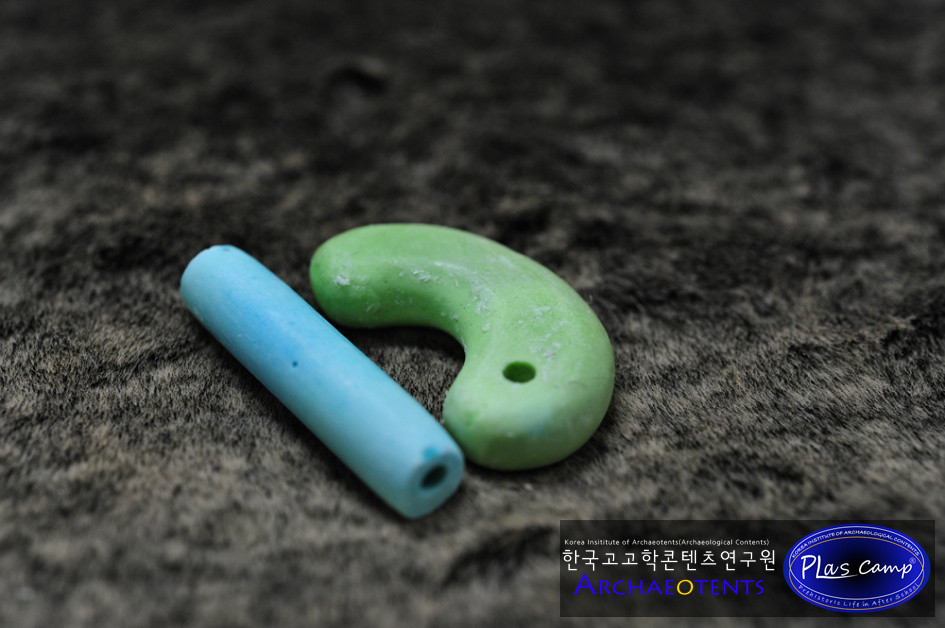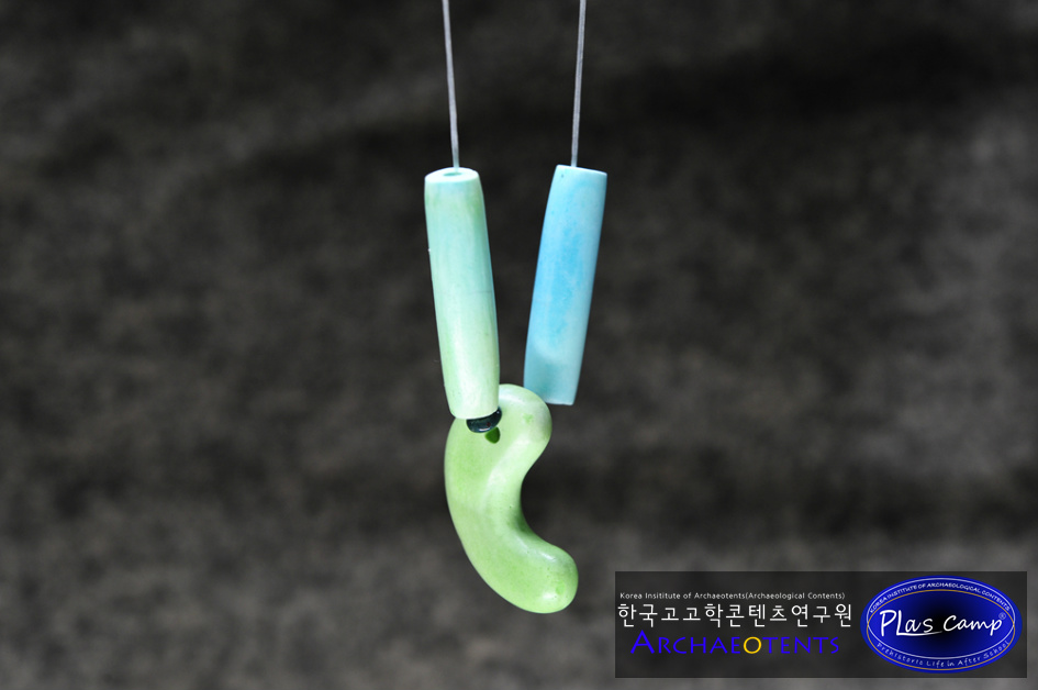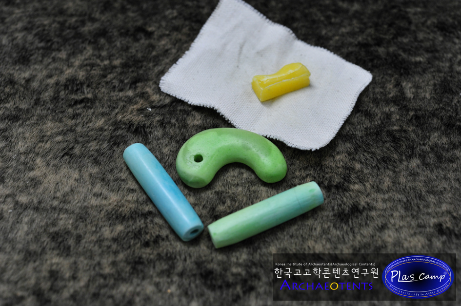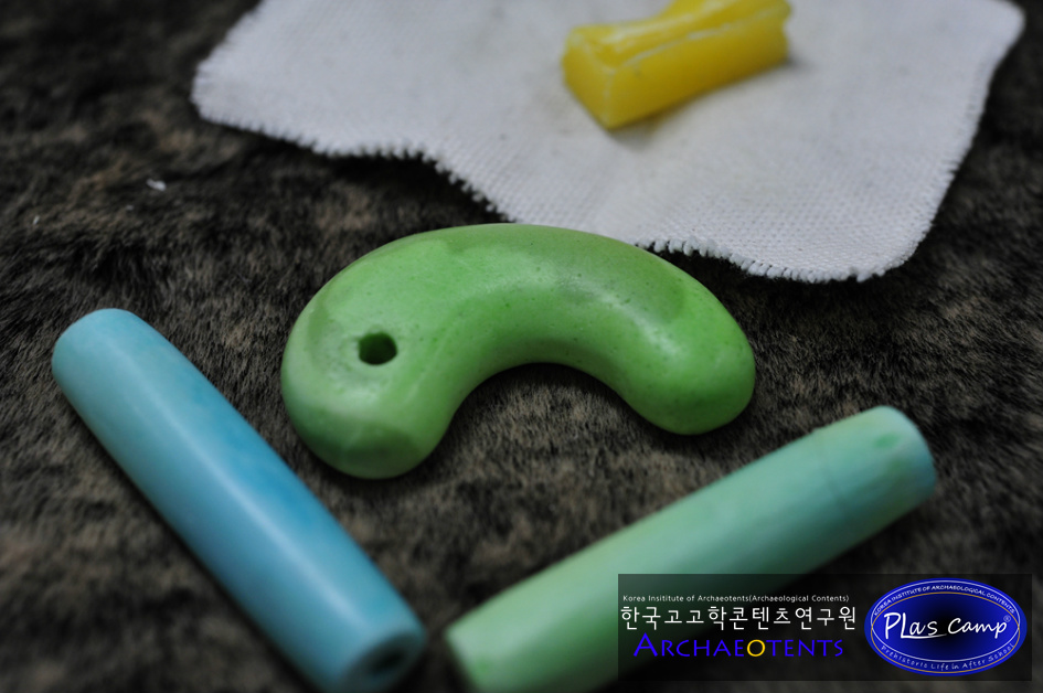 - 플라스캠프에서는 이러한 문제점들을 알고 오랜기간 이것을 대체할 수 있는 교구를 개발하기 위해 고민해왔으며 옥을 대체할 수 있는 소재와 발색을 내기 위한 많은 연구 끝에 곡옥제작체험이 가능한 교구를 준비하였습니다.