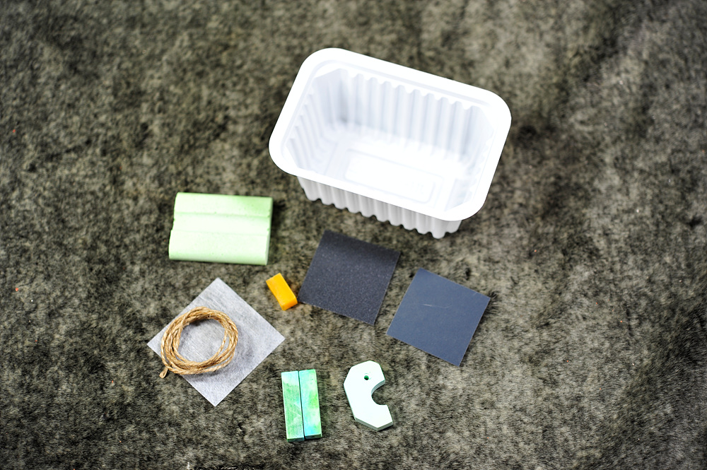 마감용사포 2장, 광택제(밀납), 광택천, 물통