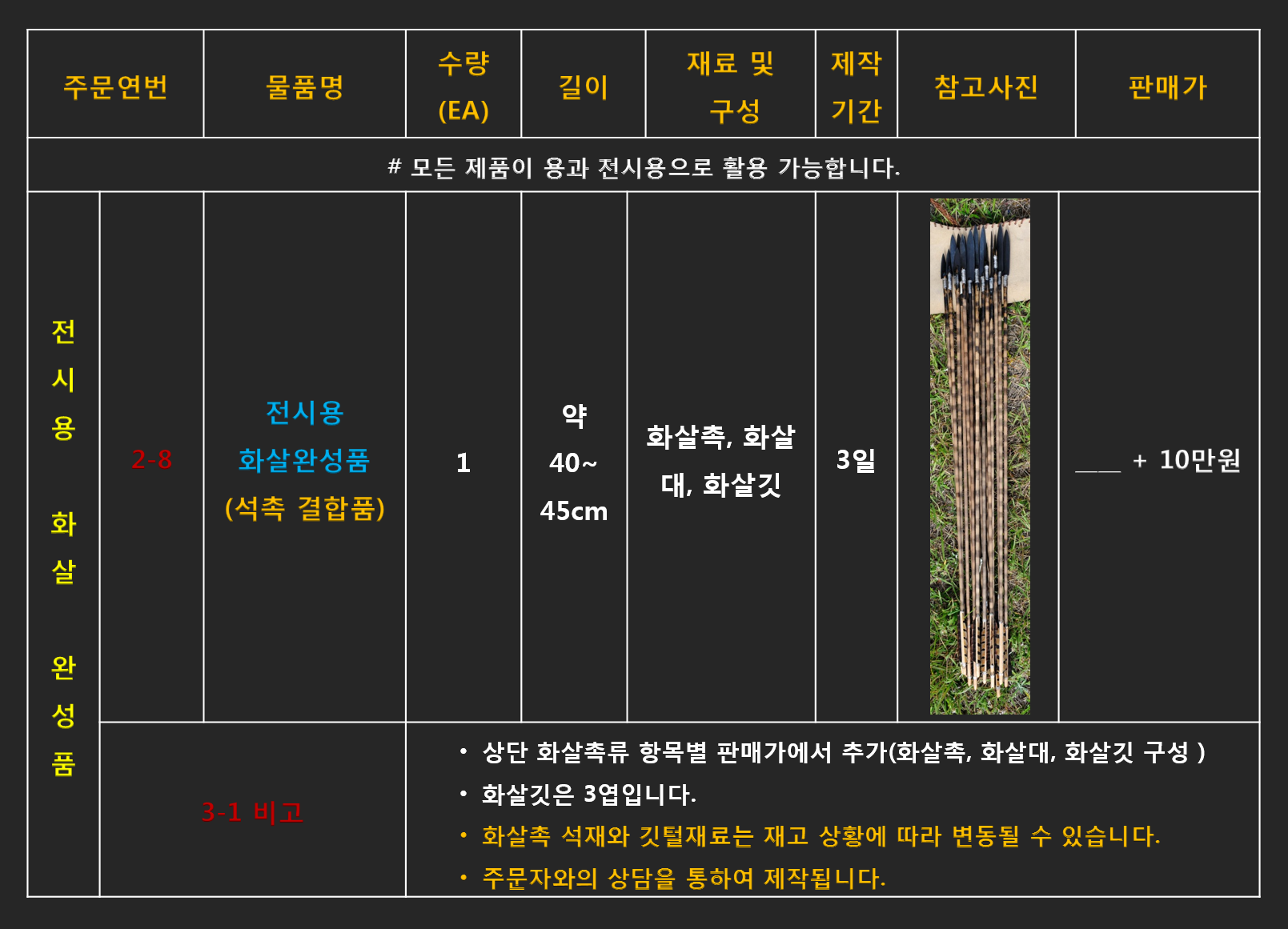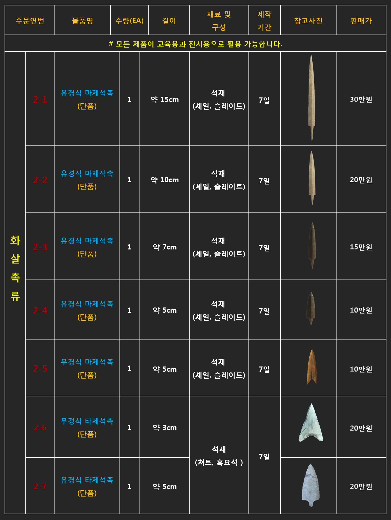 청동기시대 마제석촉 추가제작 의뢰