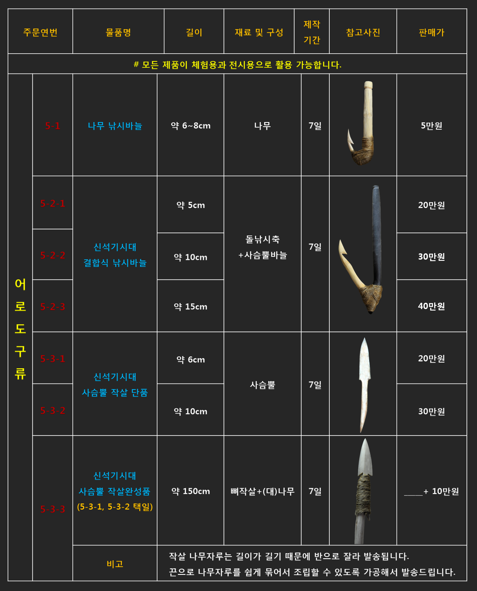 • 리스트에 있는 품목 중 유물재현품이 아닌(박물관 전시용) 단순체험용 및 교구로 사용하시길 원하신다면 제품의 품질(크기 및 재질, 완성도 등)을 조절하여 가격조정이 가능 합니다.