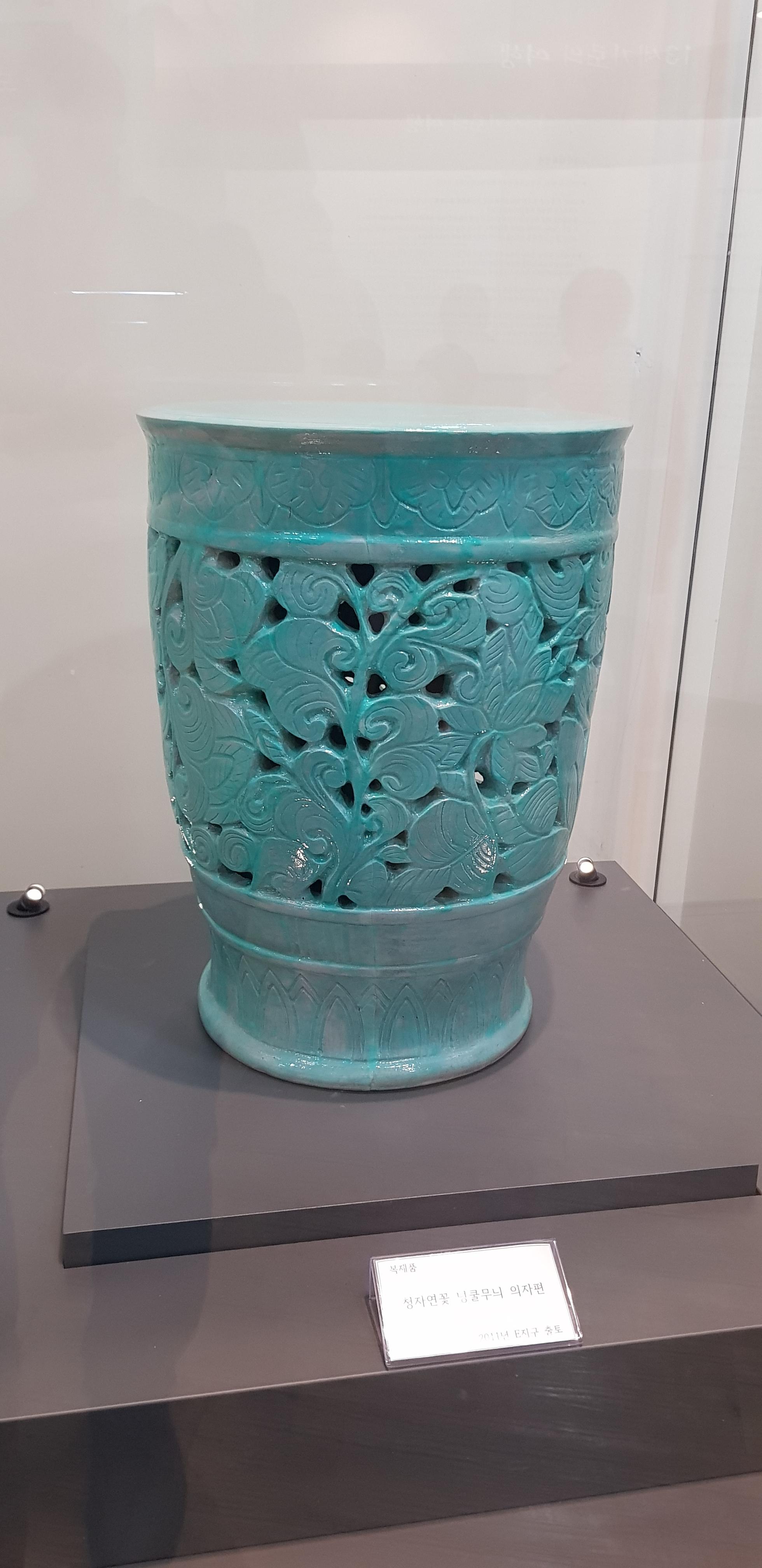 - 재벌소성과정에서 파손되어 폐기된 청자의자편을 발굴하여 완전복원시킨 유물재현품