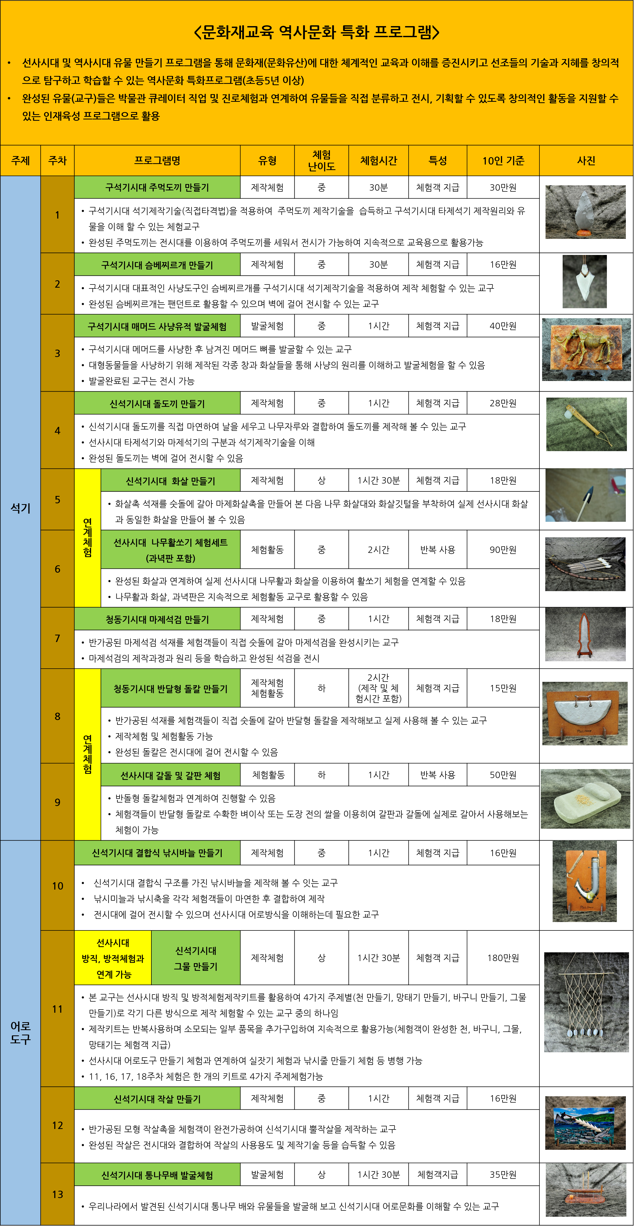 - 선사시대 및 역사시대를 주제로 한 문화재 교육 특화 프로그램입니다.