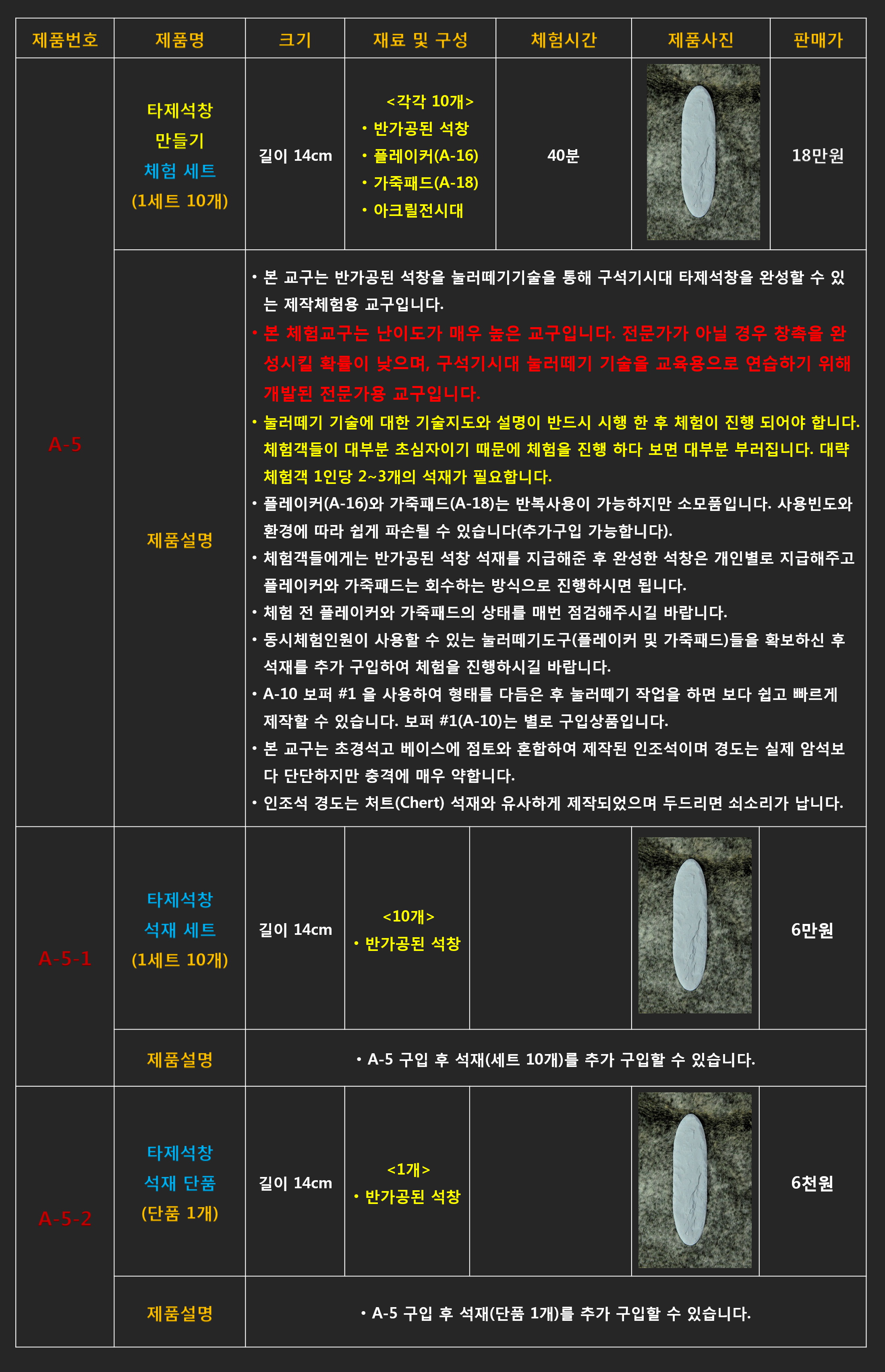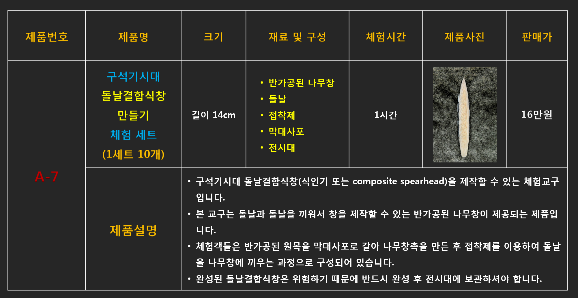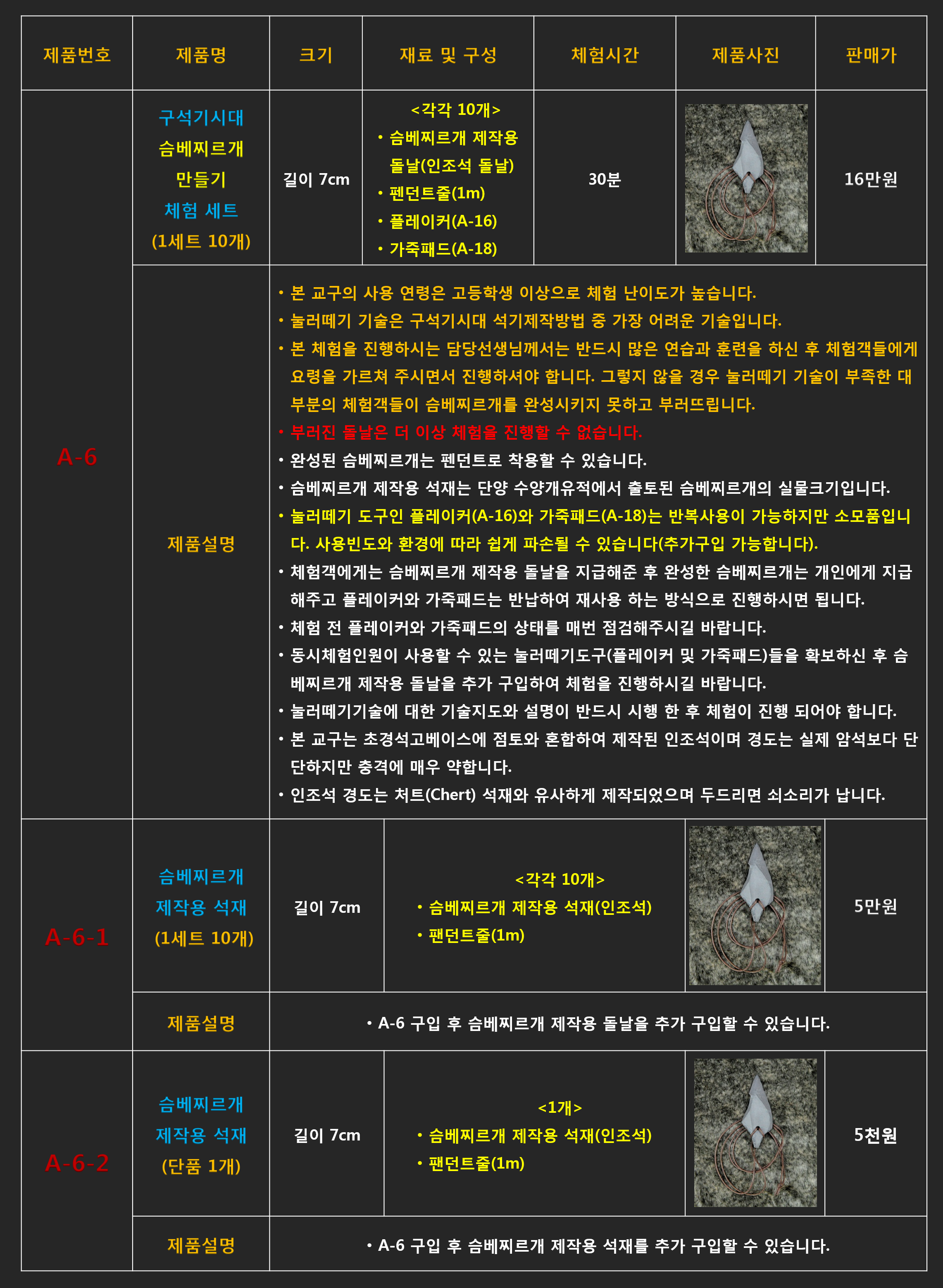# A-6 구석기시대 슴베찌르개 만들기 체험 세트