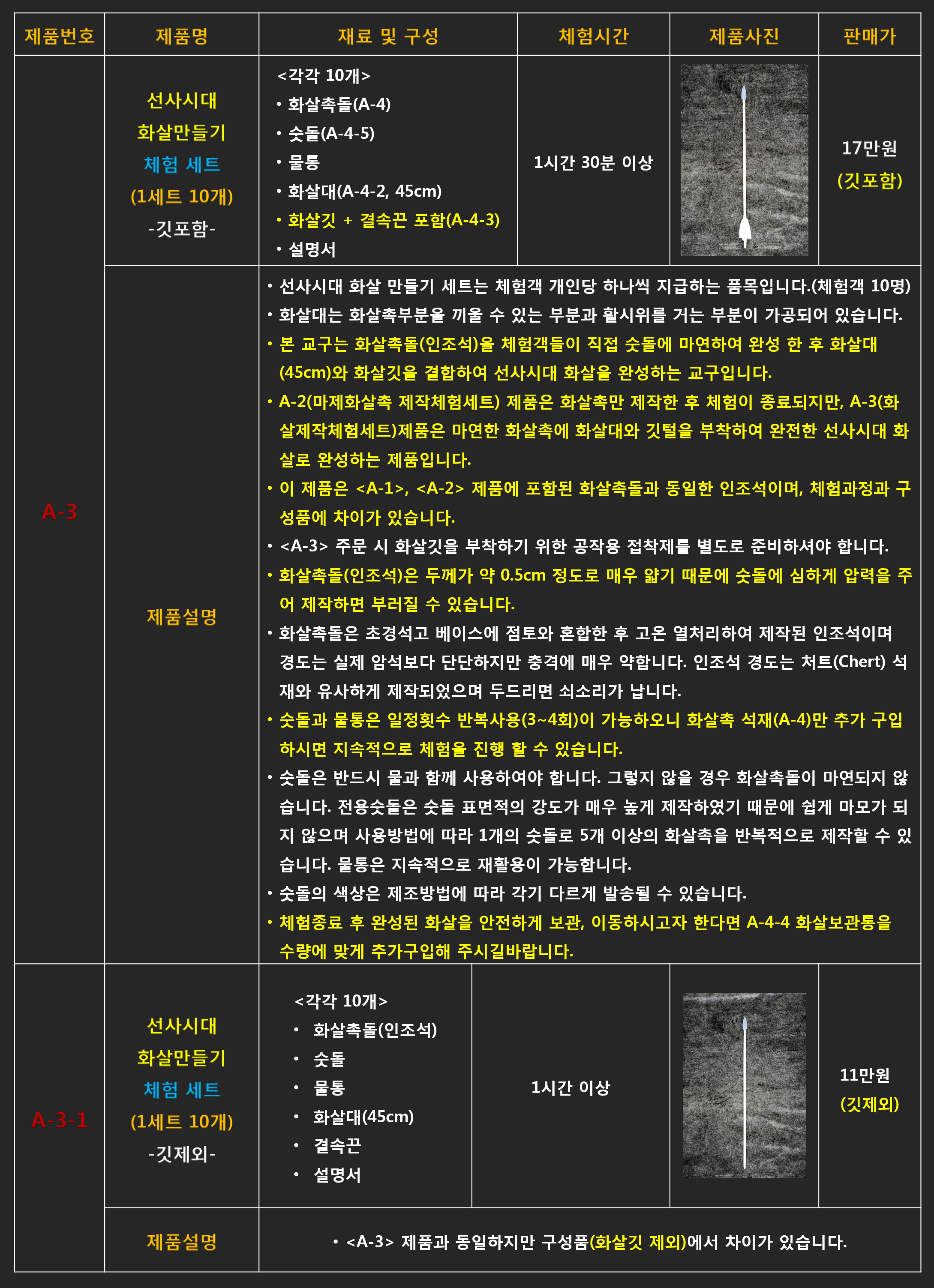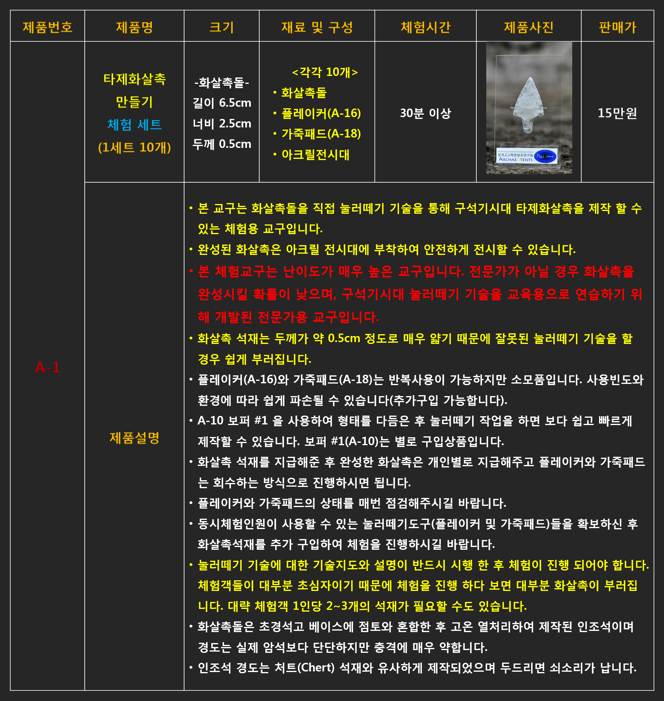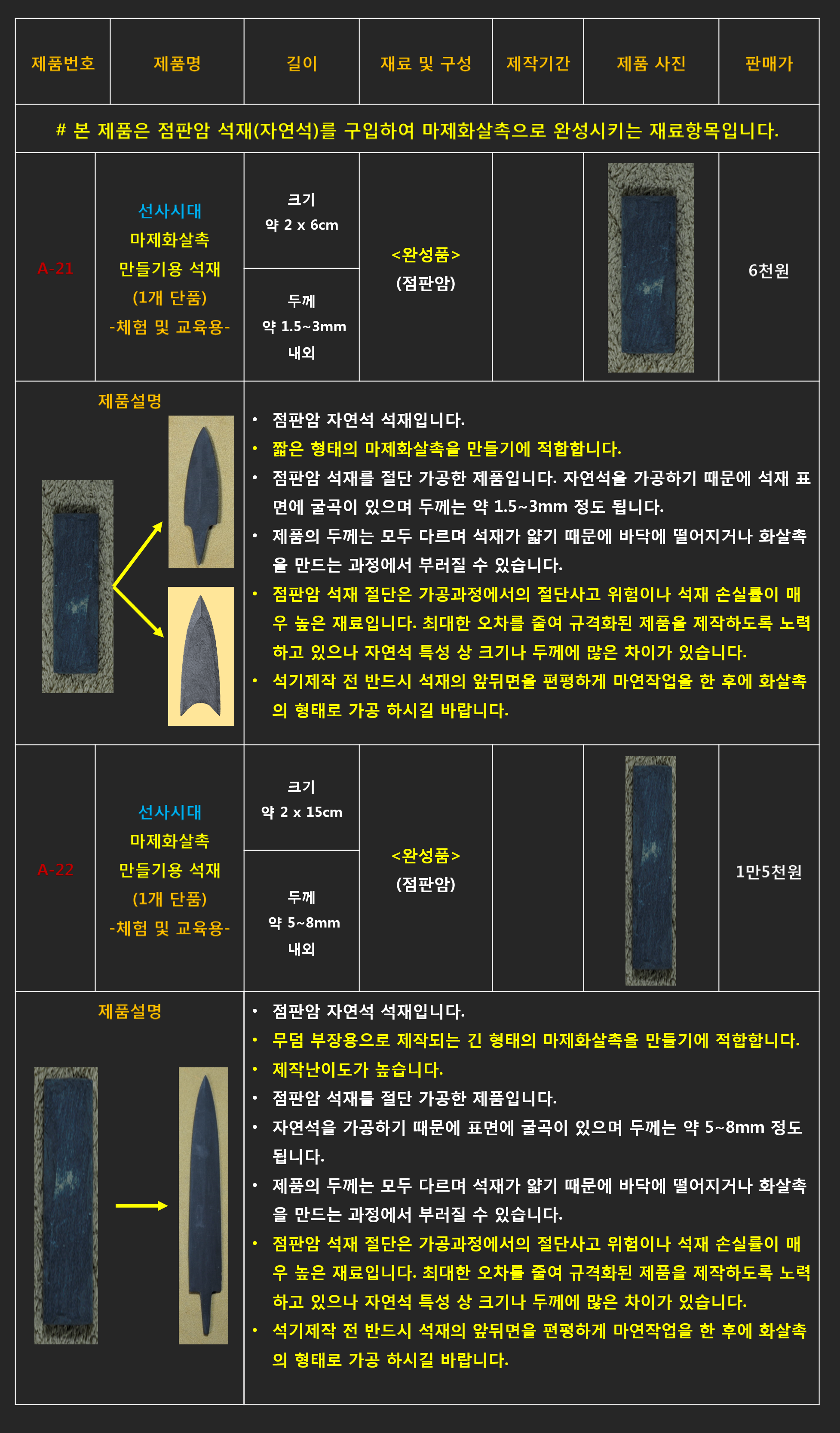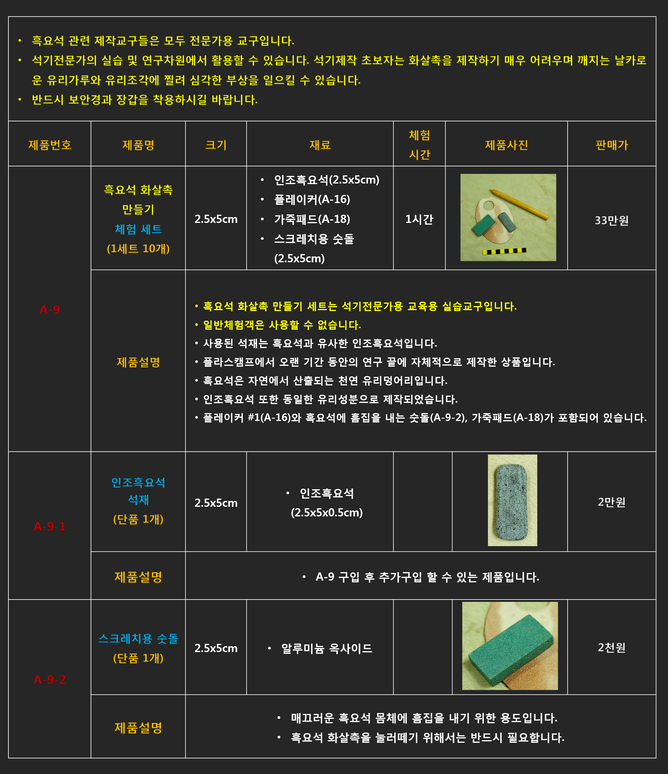 # A-9 흑요석 화살촉 만들기 체험 세트
