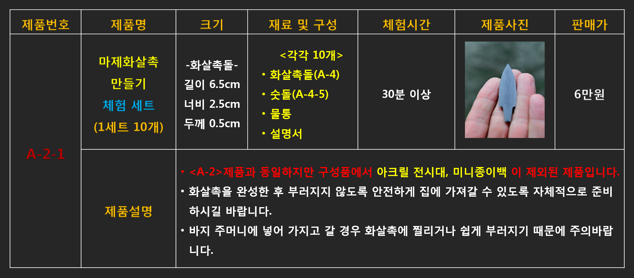 # A-2 마제화살촉 만들기 체험 세트