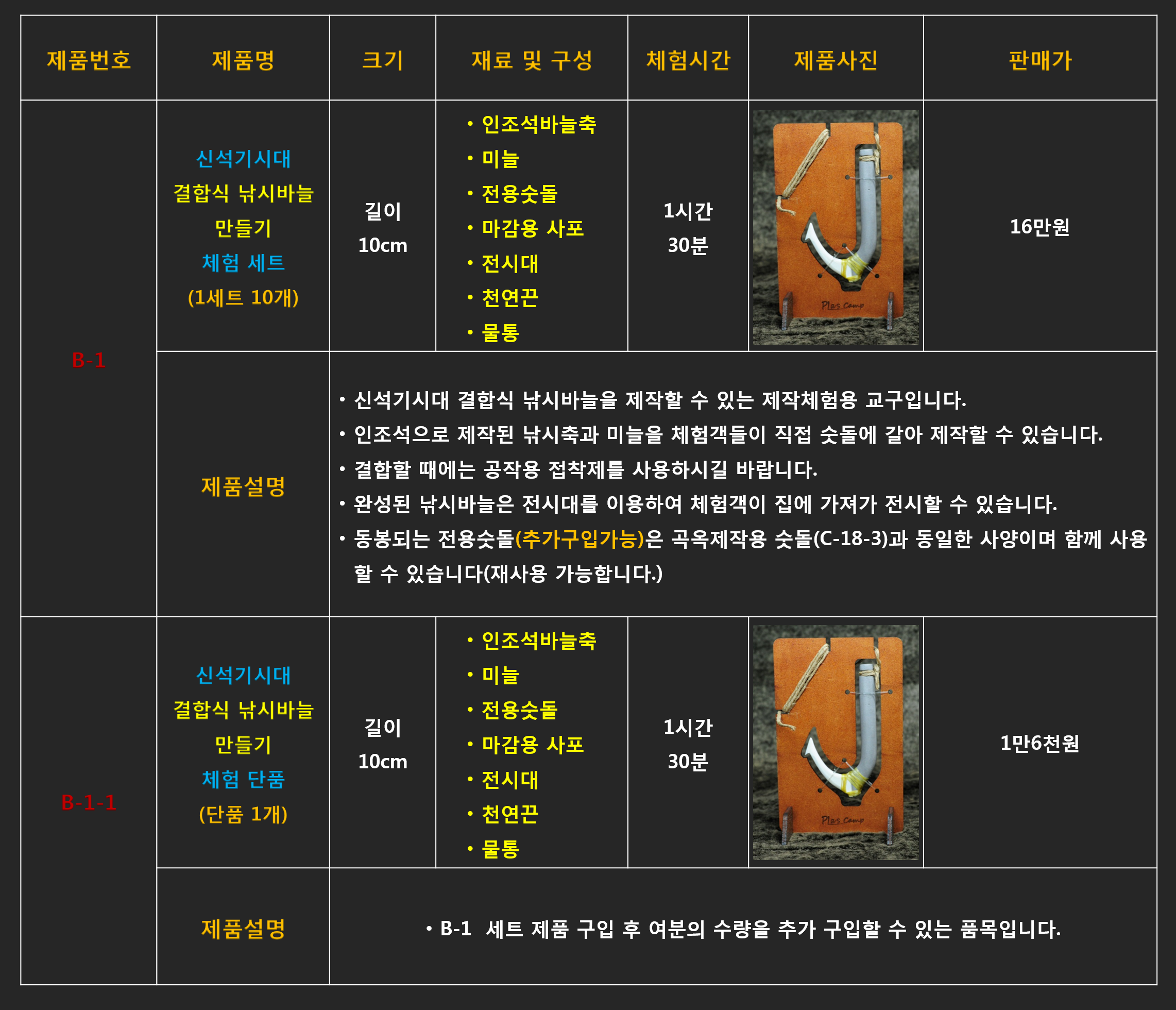 B-1 신석기시대 결합식 낚시바늘 만들기 체험 세트 (10개 한세트, 10명 체험분, 16만원) 낱개로 판매하지 않으며 벌크포장되어 묶음배송됩니다. 제품개선을 위해 꾸준히 개발하고 있기 때문에 제품