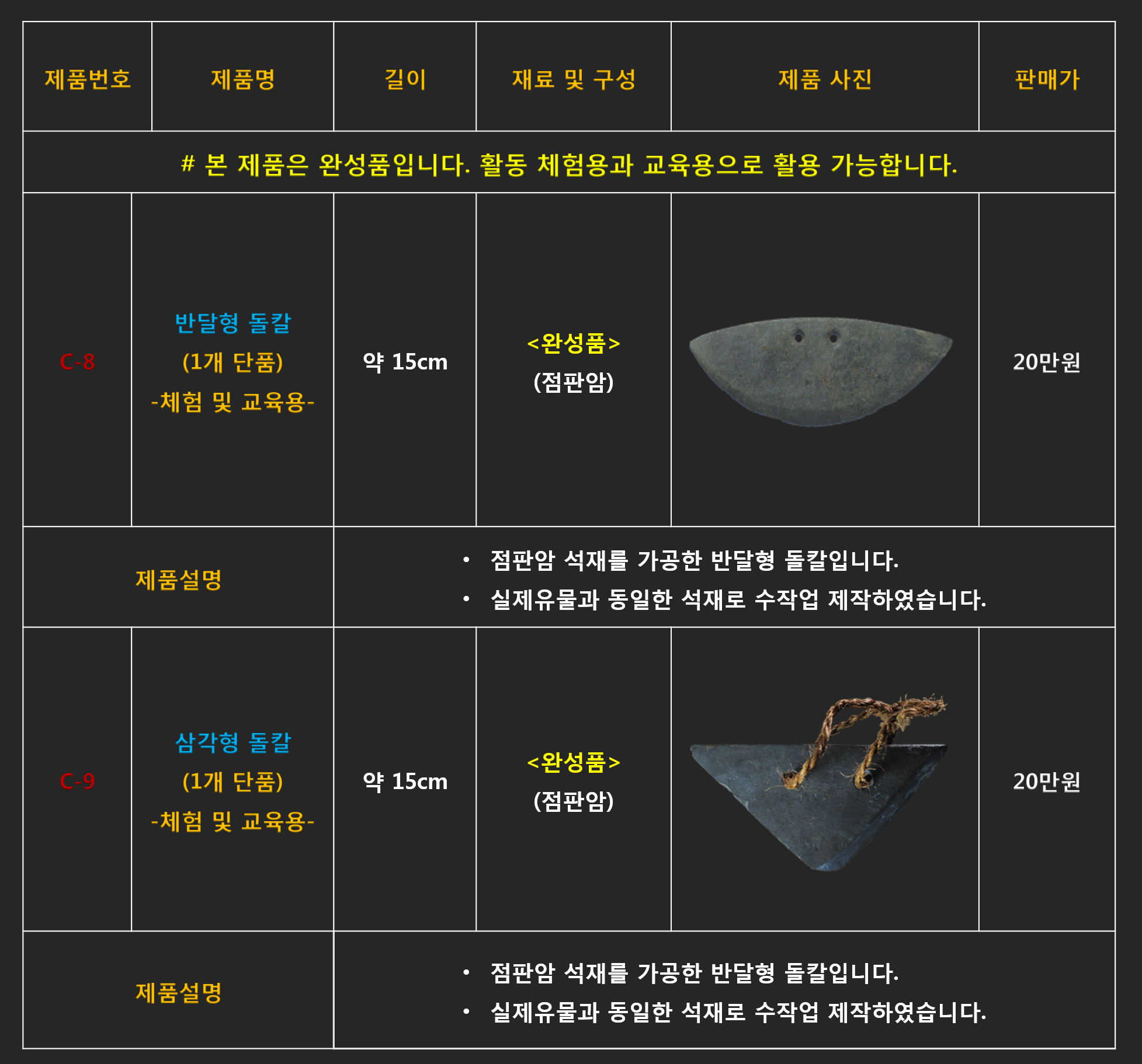 # C-8 ~ # C-9 활동체험 및 교육용 돌칼(완성품)