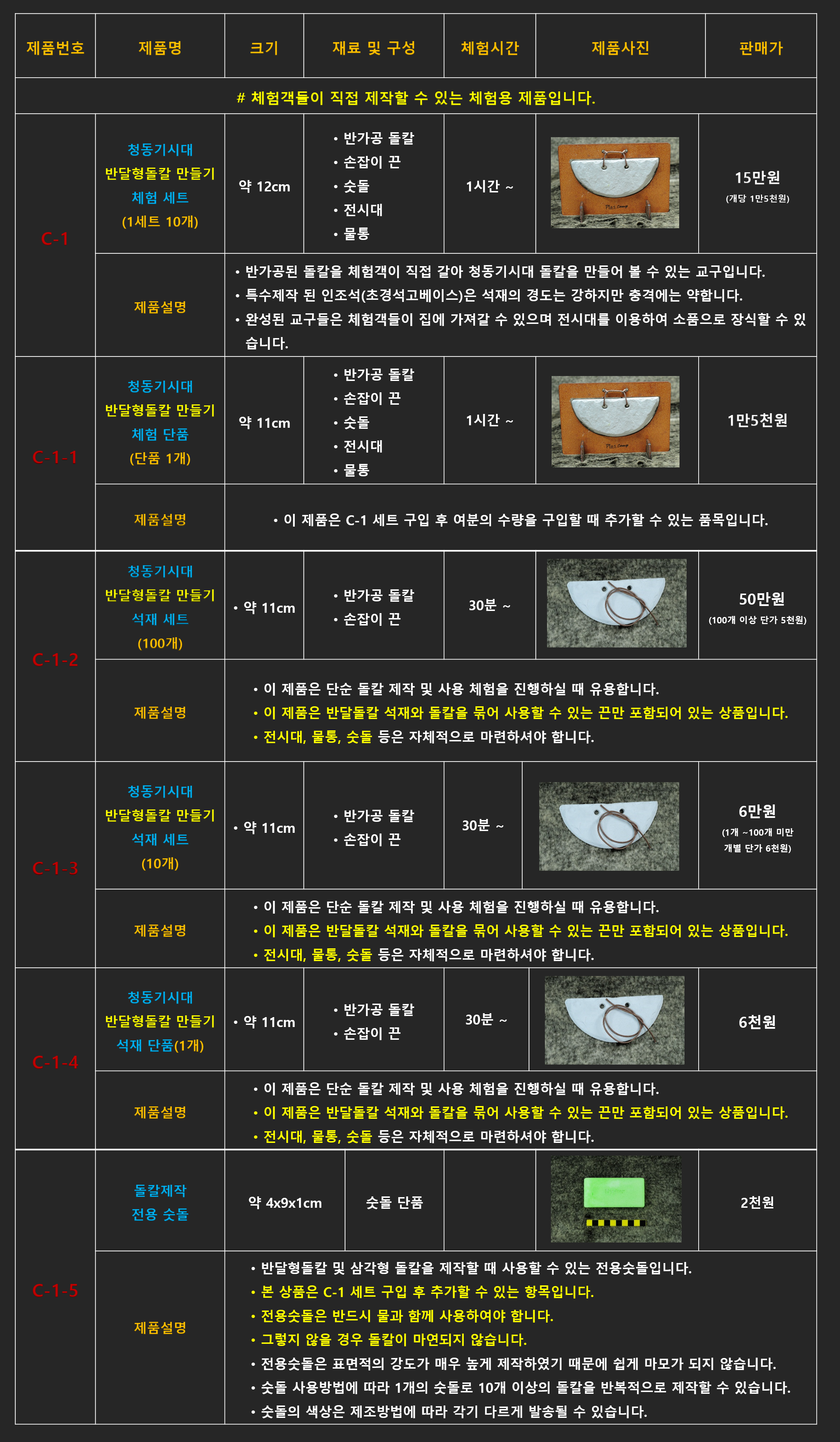 # C-1 반달형 돌칼, # C-5 삼각형 돌칼 만들기 체험 세트 (반달돌칼 만들기 체험교구) 이 제품은 제작완료 후 실제 사용 가능한 교구이며 플라스캠프에서 가장 많이 찾으시는 제품중의 하나입니다.
