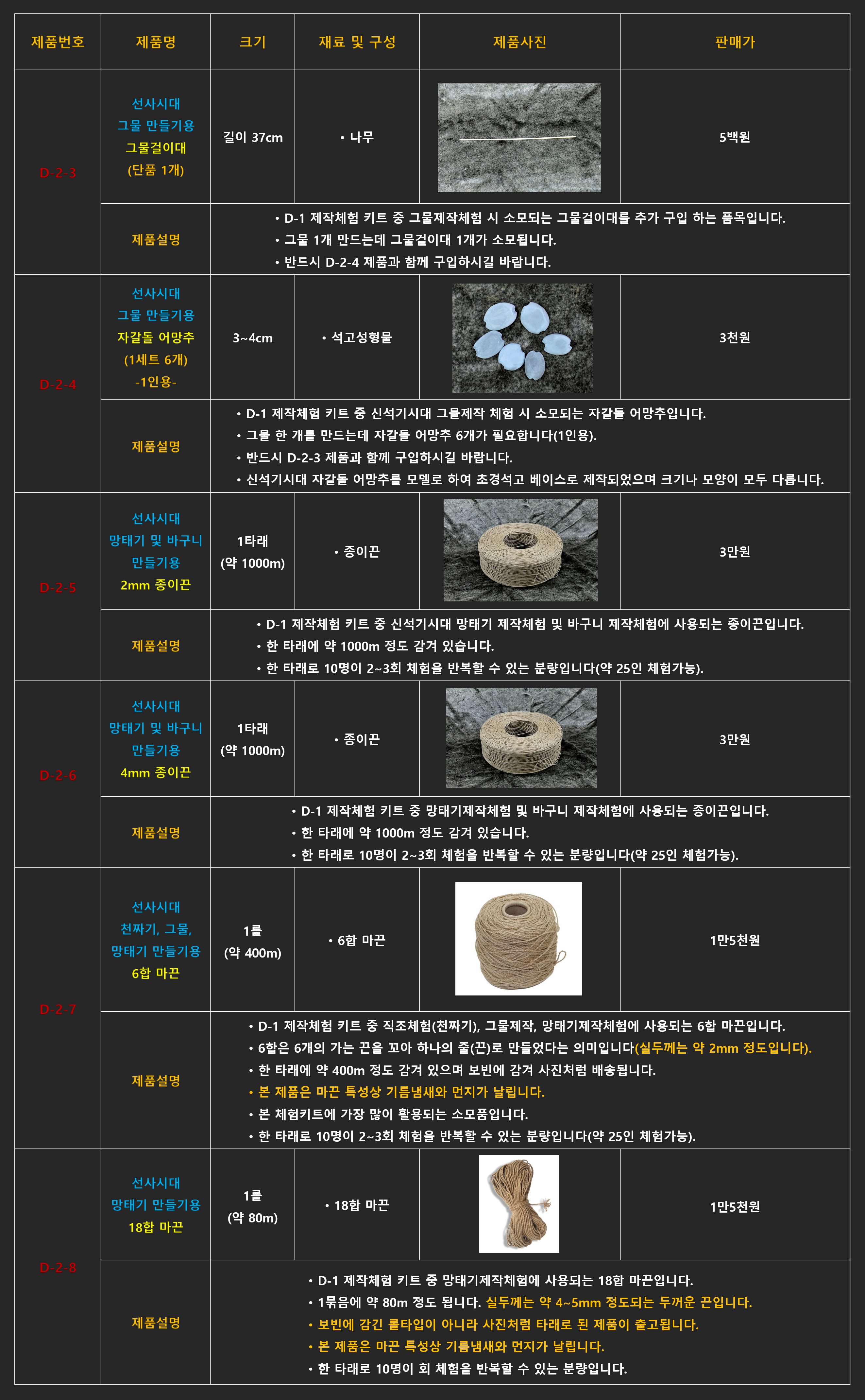 # D-1 신석기시대 가락바퀴 체험 세트 (10개 한세트, 10명 체험분) 이 상품은 고고학 유적에서 발굴되는 유물을 기반으로 제작된 고고학 전문 체험교구입니다. 가락바퀴 유물에 대한 충분한 이해와