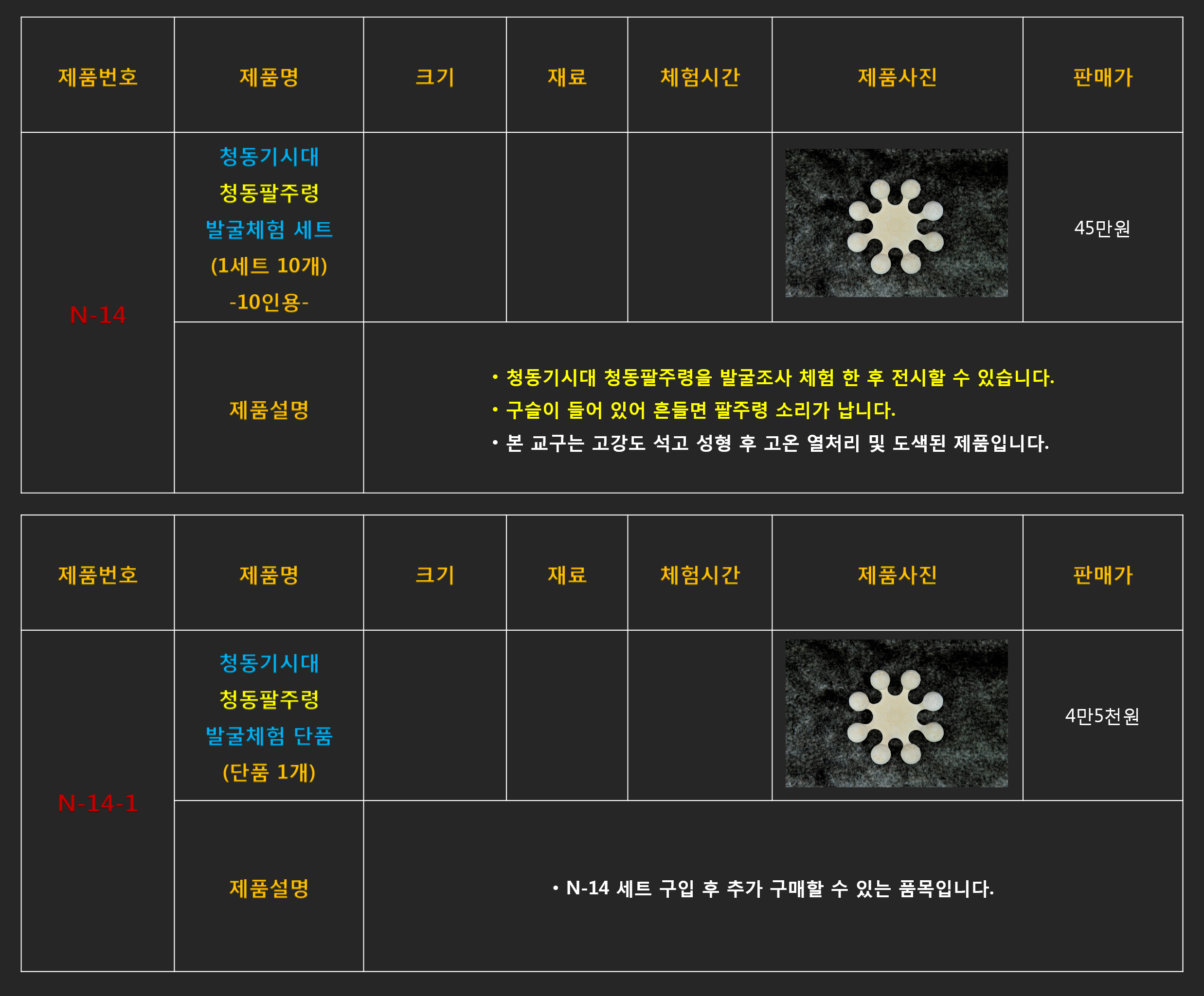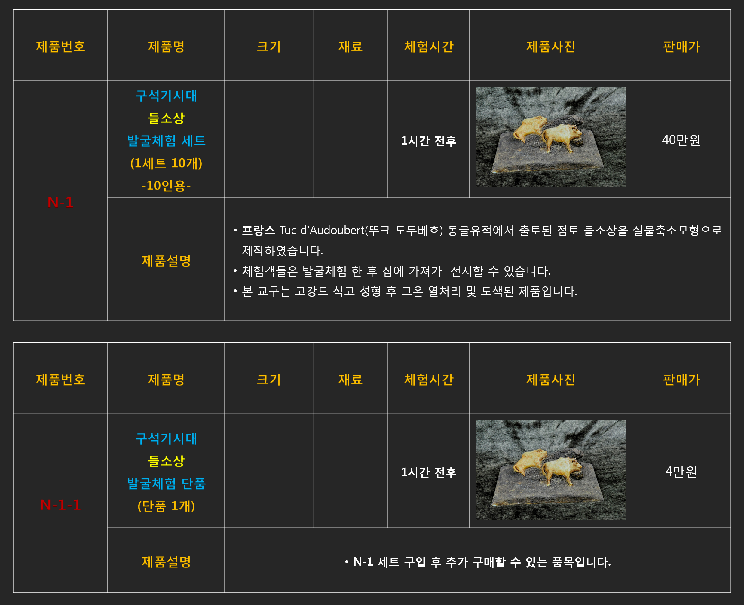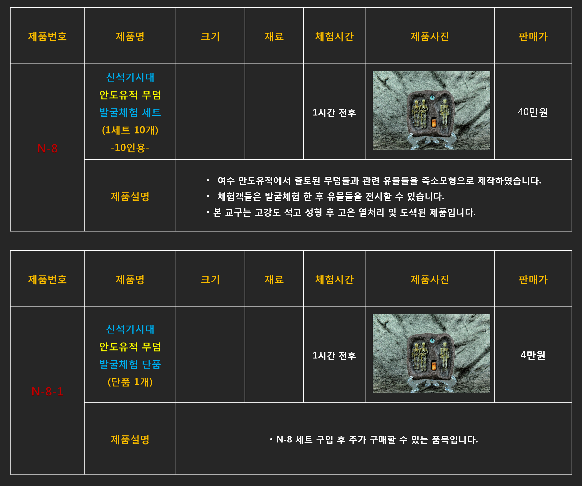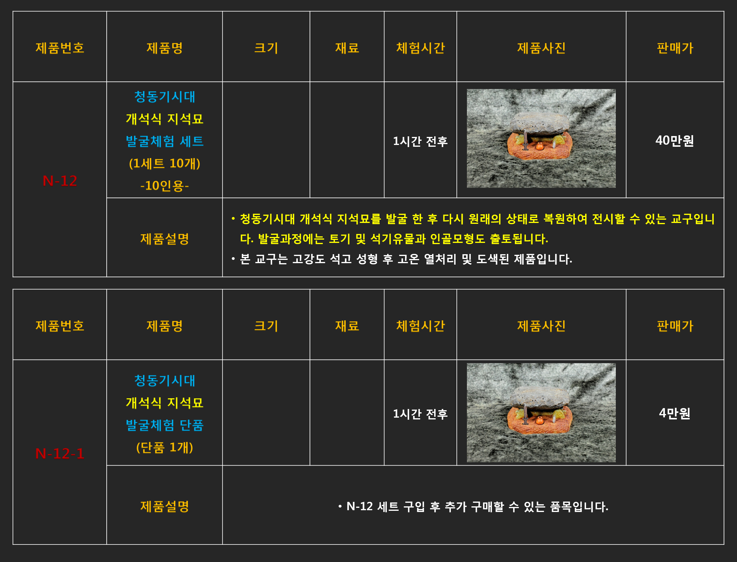 미니어처 문화재 발굴체험 제품들은 모두 주문 상담 제품들입니다.
