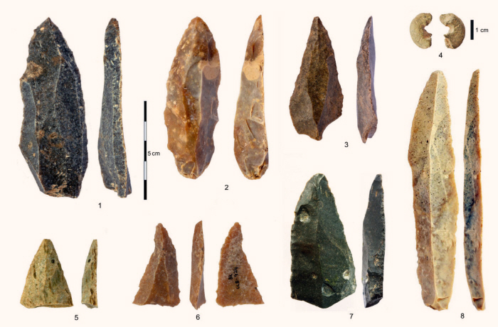 불가리아 바초키로동굴서 발견 현생 인류인 호모 사피엔스가 4만5000년 전 만든 것으로 추정되는 도구들.