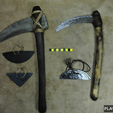 박물관 전시품 갤러리(유물 복제, 복원, 재현)150 #89 볍씨붙은 토기고배의 복원(성주 성산동고분) 가야시대 성주 성산동고분에 출토된 고배의 복원 이 시대의 벼농사와 관련된 중요한 자료로 복원전시 2014. 1. 29. #88 청동기시대 석기에서 초기철기시대 철기로의 변화과정 복원 전시 2014. 1. 29. #87 청동기시대 돌낫과 돌칼의 복원(부여 송국리유적) 2014. 1. 29. #86 반월형돌칼과 쇠칼의 변천과정(남한 송국리유적과 북한 용연동유적) 반월형돌칼의 변천과정을 알 수 있는 복원전시물 2014. 1. 29. #85 초기철기시대 철제 낫복원(용연동유적) 북한지역의 초기철기시대자료의 복원-용연동유적 2014. 1. 29. #84 초기철기시대 반달형 쇠칼복원(평안북도 위연 용연동유적) 북한지역의 초기철기시대자료의 복원-용연동유적 2014. 1. 29. #83 청동기시대 반달형돌칼 제작 가로 길이 약 12cm 가량의 체험용도의 가장 작은 반달돌칼입니다. 국내산 석재(점판암 및 흑색사암)를 가공하였습니다. 중국에서 수입되는 점판암은 대게 무르고 손에 가루가 묻어나오지만 국내산의 경우 강도가 매우 높아 오랜기간 체험을 진행할 수 있습니다. 2013. 5. 17. #82 삼국시대 창원 다호리유적 출토 고상가옥형토기 복원 다호리유적에서 출토된 가야시대 고상가옥형토기의 복원 가야시대 당시의 곡식의 보관이나 창고의 형태를 확인할 수 있는 유물이다. 높이 : 30cm 2013. 4. 16. #81 삼국시대 무안 양장리 저습지유적 출토 절굿공이 삼국시대 저습지유적에서 출토된 절굿공이 길이 : 134cm 2013. 4. 16. #80 삼국시대 무안 양장리유적 출토 낫자루 삼국시대 저습지유적에서 출토된 낫자루 낫날은 소실되어 정확한 형태를 알수 없으나 낫자루에 곡선리를 살려 기능성이 보이는 낫의 형태를 보여주고 있다. 자루 길이 : 37cm 2013. 4. 16. #79 초기철기시대 광주 신창동유적 절굿공이 복원 초기철기시대 광주 신창동 저습지유적에서 출토된 절굿공이 편 복원 절굿공이 편(52.7cm)이 확인되었으나 전체길이를 추정하여 완형으로 복원(120cm) 2013. 4. 16. #78 초기철기시대 신창동유적 출토 옹형토기 및 토기뚜껑의 복원 초기철기시대 시루와 세트를 이루는 옹형토기의 복원 높이 : 25cm 2013. 4. 16. #77 초기철기시대 광주 신창동유적 출토 시루의 복원 신창동유적에서 출토된 시루의 복원 높이 : 20cm 2013. 4. 16. #76 초기철기시대 신창동유적 출토 시루 복원 초기철기시대 시루의 복원 시루의 제작은 신석기시대부터 시루의 기능과 유사한 형태의 토기가 사용되었지만 본격적인 형태의 완성은 청동기시대를 거쳐 초기철기시대에 왕성해진다. 높이 : 21.7cm 2013. 4. 15. #75 초기철기시대 광주 신창동유적 출토 낫자루의 복원 초기철기시대 낫의 형태를 알 수 있는 나무손잡이의 복원. 신창동유적에서는 낫날은 확인되지 않아 정확한 날의 형태는 파악하기 어렵지만 그와 유사한 시기인 완주 갈동유적의 낫의 형태와 비교해 볼 수 있다. 신창동유적의 대부분의 목제 자루의 제작은 쐐기를 활용하여 고정하는 방식이 주로 사용되었다. 자루길이 : 30cm 낫날 : 추정복원 : 22cm 2013. 4. 15. #74 초기철기시대 신창동유적 국자 복원 초기철기시대 대표적인 식기용품인 토제국자의 복원 길이 : 17cm 2013. 4. 15. #73 신석기시대 김천 송죽리유적 출토 빗살무늬토기 복원 송죽리유적 특징인 빗살무늬토기의 복원 복원된 토기의 소성과정 중의 특성상 잔금이나 균열이 있을 수 있습니다. 토기높이 : 12.6cm 2013. 4. 15. #72 초기철기시대 사천 늑도유적 출토 사슴뿔 낫 복원 사천 늑도유적에서 출토된 사슴뿔 낫의 복원. 초기철기시대에는 동물자원을 활용한 도구제작의 예가 가장 빈번한 시기이다. 길이 : 31cm 2013. 4. 15. #71 삼국시대 부여 사비도성 출토 가래 복원 부여 사비도성에서 출토된 목제가래의 복원 길이 : 137.6cm 판매완료 2013. 4. 15. #70 삼국시대 부여 사비도성 출토 나무삽 삼국시대 나무삽의 복원. 삼국시대 농경과 관련된 나무삽의 형태를 알 수 있는 중요한 자료이다. 길이 : 105cm 2013. 4. 15. #69 초기철기시대 복골의 제작 광주 신창동유적과 군곡리패총에서 출토된 복골의 복원 복골은 주술적인 점치는 도구로 확인되고 있으며 달군 쇠를 뼈에 지졌을 때 갈라지는 형태를 보고 점궤를 보았던 도구로 보고 있다. 복골은 주로 사슴 견갑골, 말 견갑골, 소 견갑골, 멧돼지 견갑골 등을 사용하고 있다. 복골 세로.. 2013. 4. 15. #68 초기철기시대(탐라) 제주지역 곽지패총 출토 패칼 복원 제주지역의 주변자원을 활용한 패칼의 복원 조개껍질로 제작된 김녕리유적의 패촉(조개껍질 화살촉)과 함께 반월형돌칼을 조개껍질로 제작한 형태 석기제작에 적합한 석재의 공급이 부족한 제주지역만의 특색을 살펴볼 수 있는 유물이다. 패칼에 사용된 전복껍질 역시 말전복껍질을 활용한 것으로 대략적인 크기를 추정하면 약 15~18cm 가량의 손바닥크기의 껍질을 가공하여 제작하였다. 가로길이 : 12cm, 13cm 2013. 4. 15. #67 청동기시대 논산 마전리유적 출토 새모양 목제품 복원 청동기시대 유일한 목제 조형품으로 논산 마전리유적에서 출토되었다. 청동기시대에 새에 대한 상징성을 엿볼 수 있는 귀한 유물이다. 길이 : 21.4cm 2013. 4. 9. #66 삼국시대 광주 동림동유적 
