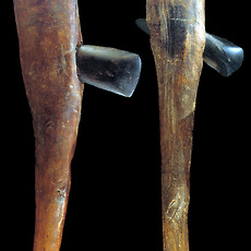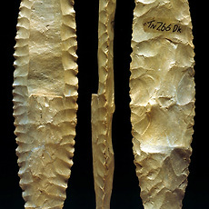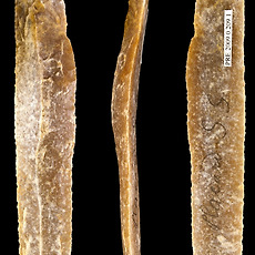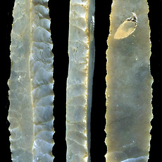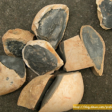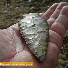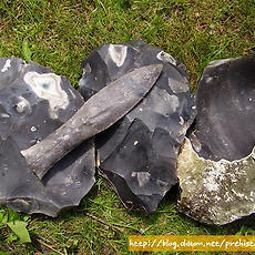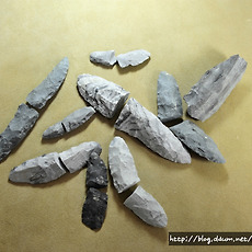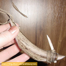 실험고고학 자료실260 힘줄(sinew)을 활용한 천연 끈 - 힘줄은 성질이 질겨 도구의 제작 또는 매듭을 지을때 매우 효과적임 - 특히 화살이나 도끼등을 제작할때 결속끈으로 매우 효과적이며 줄의 강도가 높기 때문에 쉽게 끊어지지 않음 - 잘 건조한 힘줄은 나무망치나 자갈돌 등으로 내리쳐 근섬유를 분리시킨 다음 서로 꼬아 사용하게 되는.. 2011. 9. 25. 2011.09.23 토기소성-노천가마 속의 토기 -완전 소성이 되기 전에 이미 해가 진 상황에서 노천 가마 속에서 소성중인 토기 2011. 9. 23. 선사시대 토기수리-수리공의 제작과 이해 - 선사시대 대표적인 천공도구인 뚜르개를 이용하여 수리공 제작 -과거 신석기시대 토기와 청동기시대토기에서 확인되는 동체부의 구멍들이 줄을 걸기위한 매듭구멍으로 잘못알려져 있었으나 이것은 외벽에 금이간 균열들을 메우기 위한 수리공의 흔적들임 -먼저 메우는 과정에서 송진.. 2011. 9. 23. 천연접착제-송진을 이용한 천연타르제작 자연에서 쉽게 채취할 수 있는 송진은 선사시대에 매우 유용한 물질 중의 하나- 송진을 활용하여 천연접착제로 활용할 수 있음- 현재까지 한국 선사고고학에서 송진을 활용하여 도구를 제작한 사례는 확인되지 않으나 북유럽 등지에서는 구석기시대에 송진과 타르를 결합한 천연 접착제 성분이 실제로 이 시대에 사용된 증거들이 발견된 바 있음- 가까운 일본의 나가노현 지역의 마쯔바라유적에서는 특별한 타제석촉이 확인되었는데 슴베부분에서 천연 타르 성분이 검출되어 접착용도가 최소한 이시기-일본 야요이 중기시기)부터 사용된 것이 확인됨 2011. 9. 23. 복원과정 중 반파된 석기들 - 석창 또는 화살촉 제작과정에서 반파된 석기들 2011. 9. 23. 석창제작과정 중의 반파되는 경우 - 석창제작에서 가장 힘든과정은 양면을 손질하기 위해 지나친 타격(over striking)으로 인한 석기의 손실 - 약 70% 의 작업과정이 진행된 이번 석창제작에서 두터운 손질면이 남아 타격을 위한 타격면을 조정한 다음 무릎떼기를 이용하여 박리시도 - 타격과정에서 석기 몸체쪽으로 타격방향.. 2011. 9. 23. 실험고고학-덩쿨의 활용 - 선사시대 천연 끈으로 활용도 가치가 높은 식물덩쿨 - 숲에 가면 이러한 덩쿨 또는 기생식물 줄기등을 쉽게 구할수 있음 - 말린다음 뜨거운 물에 끓여 사용하면 줄의 강도가 높아진다. - 주로 화살촉이나 돌도끼등에 결합하기위해 사용 - 칡줄기 또한 매우 활용도가 높은 줄의 역활을 함 2011. 9. 23. 실험고고학-뼈작살제작 - 사슴뿔을 잘라 마연후 신석기시대 뼈작살을 제작 - 한쪽으로 치우쳐지게 다듬고 슴베부분을 날카롭게 다듬은 것은 신석기시대 특유의 제작기법이다. - 이렇게 제작된 작살은 살대와 결합할때 자연적인 미늘이 생성되어 사냥시 효과적인 기능을 발휘한다. 2011. 9. 23. 실험고고학-돌날몸돌 - 돌날을 떼어내기 위한 몸돌성형후 돌날떼어내는 작업 - 돌날을 떼어내는 과정에서 원활한 돌날떼기 작업을 위해 지속적인 타격면 조정을 통해 돌날몸돌이 점차 축소되는 과정 - 첫번째 돌날(crested blade)을 떼어낸 후 두번째 돌날에서 중간에 부러지는 현상 발생(stepping) - 이후 타격면과 .. 2011. 9. 23. 석기제작-르발루아포인트 - 쳐트 석재를 활용한 르발루아포인트 제작 2011. 9. 21. 실험고고학-볼라스톤 - bola라고 불리는 이 사냥도구는 선사시대의 매우 효과적인 역활을 한것으로 알려져 있는데 대륙별로 독특한 특성들이 확인된다. - 그림에서 보이는 것 처럼 줄이 엉키지 않게 석구가 각자의 위치에서 원형을 그리며 돌리는 것은 매우 어려운 기술이다. - 이러한 석기들은 무리를 이루고 .. 2011. 9. 21. 실험고고학-석기제작을 위한 최적의 석재들 - 플린트, 할세도니, 흑요석(마호가니) - 국내에서는 쉽게 구할수 없는 석재들이다. 2011. 9. 21. 실험고고학-이누이트 전통 낚시바늘 2011. 9. 21. 플루팅기법을 위한 지그(Jig) - 클로비스 제작을 위한 컴파운드 지그 -클로비스나 폴섬문화시기의 독특한 석기제작기법중의 하나인 플루팅기법(fluting)을 효과적으로 시행하기 위해 현대의 석기제작전문가들이 고안한 도구 -지렛대의 원리를 이용하여 수직으로 세워진 석창의 가장자리부분에 누름면(platform)을 손질한.. 2011. 9. 21. 눌러떼기 기법으로 제작한 석창 - 정교한 눌러떼기 기법으로 날의 손질과 성형작업을 마친 후 상태 2011. 9. 21. 실험고고학-이누이트들의 울루(Ulu) 이누이트에게 없어서는 안될 중요한 도구 -약 10,000~12,000년 전 선사시대부터 그 전통이 이어져 내려온 이누잇의 전통도구 -고기를 자르거나 지방을 벗겨내는데 매우 효과적인 도구임 -이제는 관광상품화가 되어 그들이 운영하고 있는 샵에서 기념품으로도 팔리고 있음 2011. 9. 20. 실험고고학-타제 화살촉복원 - 타제화살촉 및 클로비스형 석창 복원 - 크리스탈소재 가공 2011. 9. 18. 청동기시대 마제석검 복원제작 - 검신에 혈구가 있고 기부에 홈을 조성한 유절식 마제석검 - 석재는 흑색세일을 활용 - 약 54cm길이의 대형 마제석검. - 선사체험 교구용 자료 2011. 9. 14. 주먹도끼 이미지 - 쳐트석재로 실험제작한 주먹도끼 복원품 - 아슐리안 형(아몬드형) 2011. 9. 14. 프랑스 오리그나시앙시기의 돌날몸돌 접합과정 - 